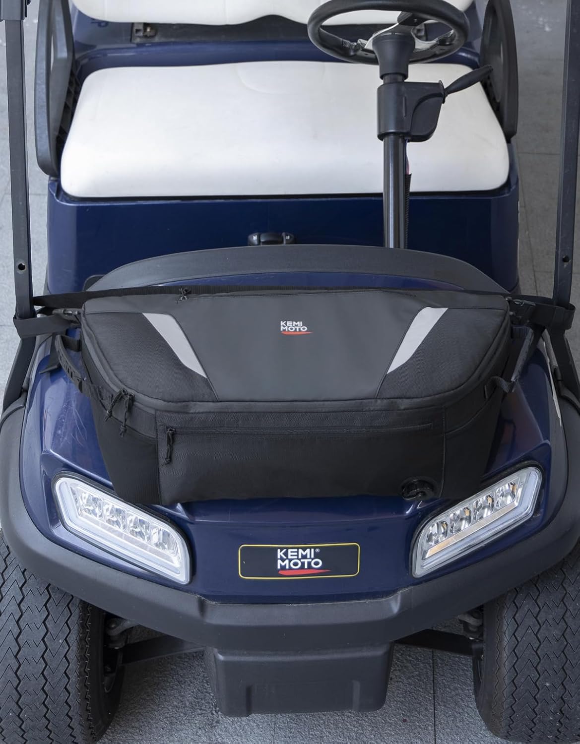 KEMIMOTO Golf Cart Cooler Bag, Fits 20-30 11oz Cans, Insulated with Drain Plug, Reflective Finish, Handy Pockets, Golf Cart Accessories Gifts for Golfers Men, Compatible with EZGO Club Car