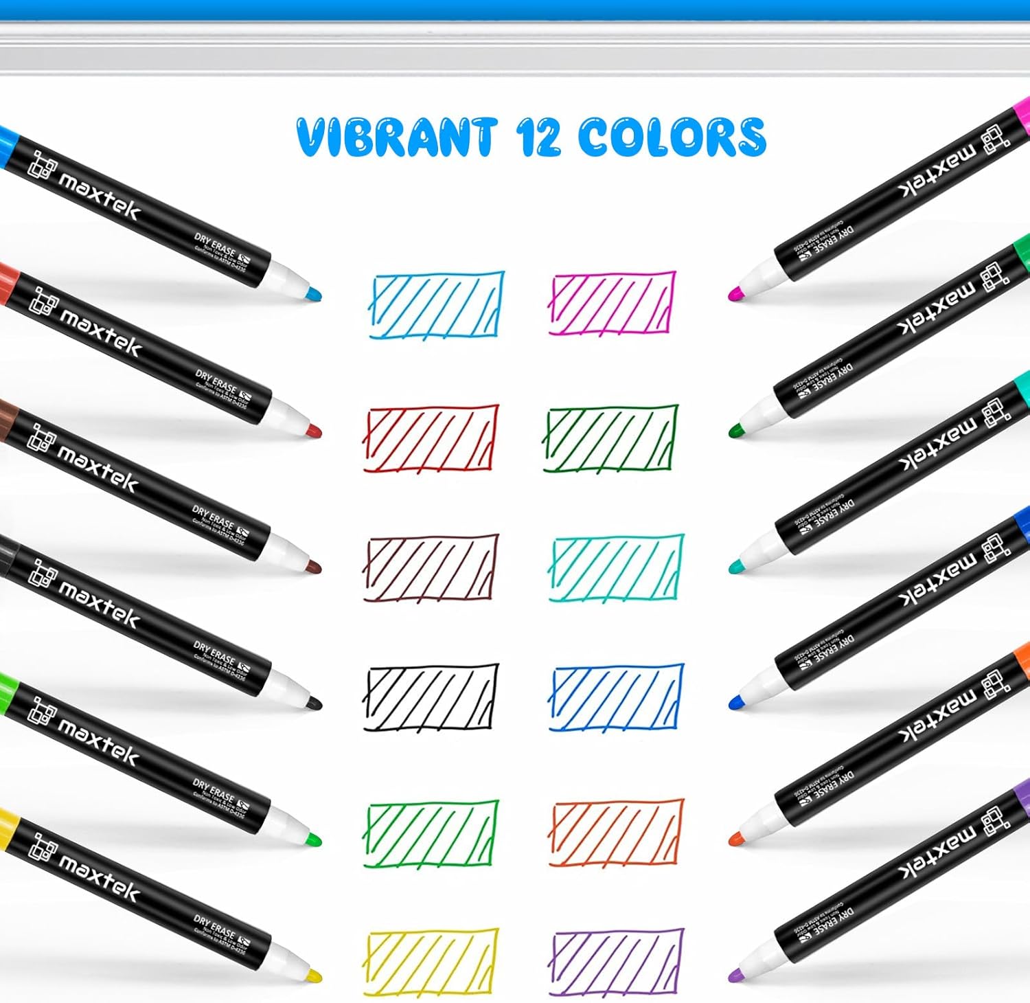 maxtek 60 Count Magnetic Dry Erase Markers, Fine Tip, 6 Colors, Low Odor Whiteboard Markers with Built-in Eraser