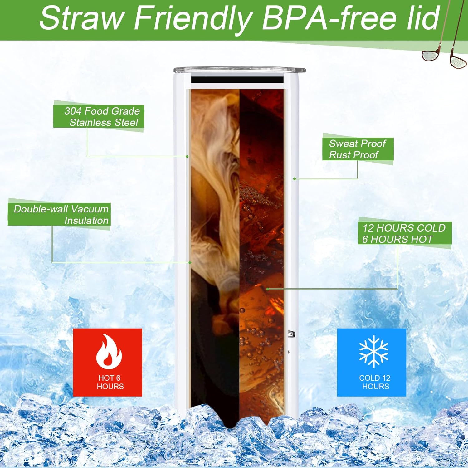 - Keeps Drinks Perfectly Tempered: featuring advanced double-wall vacuum insulation, these golf gifts tumblers are designed to keep your beverages hot for up to 6 hours and cold for up to 12 hours; Enjoy your favorite drinks at the perfect temperature while out on the course or during outdoor activities without compromising the taste or freshness of your drinks