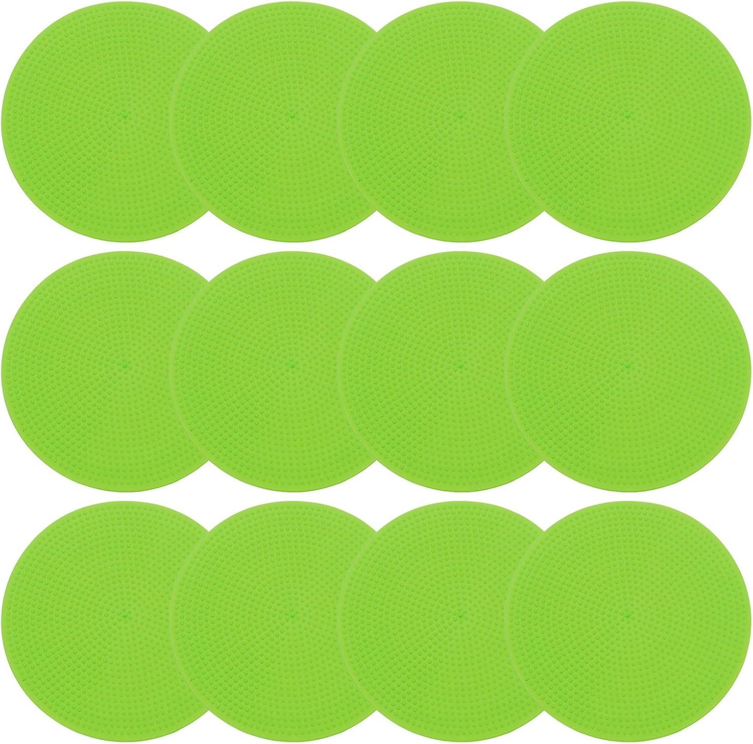 - Material: TPE; Color: Green; Diameter: 23cm / 9.06inch; Packing List: 12pcs of floor dots, 1 pcs of storage bag