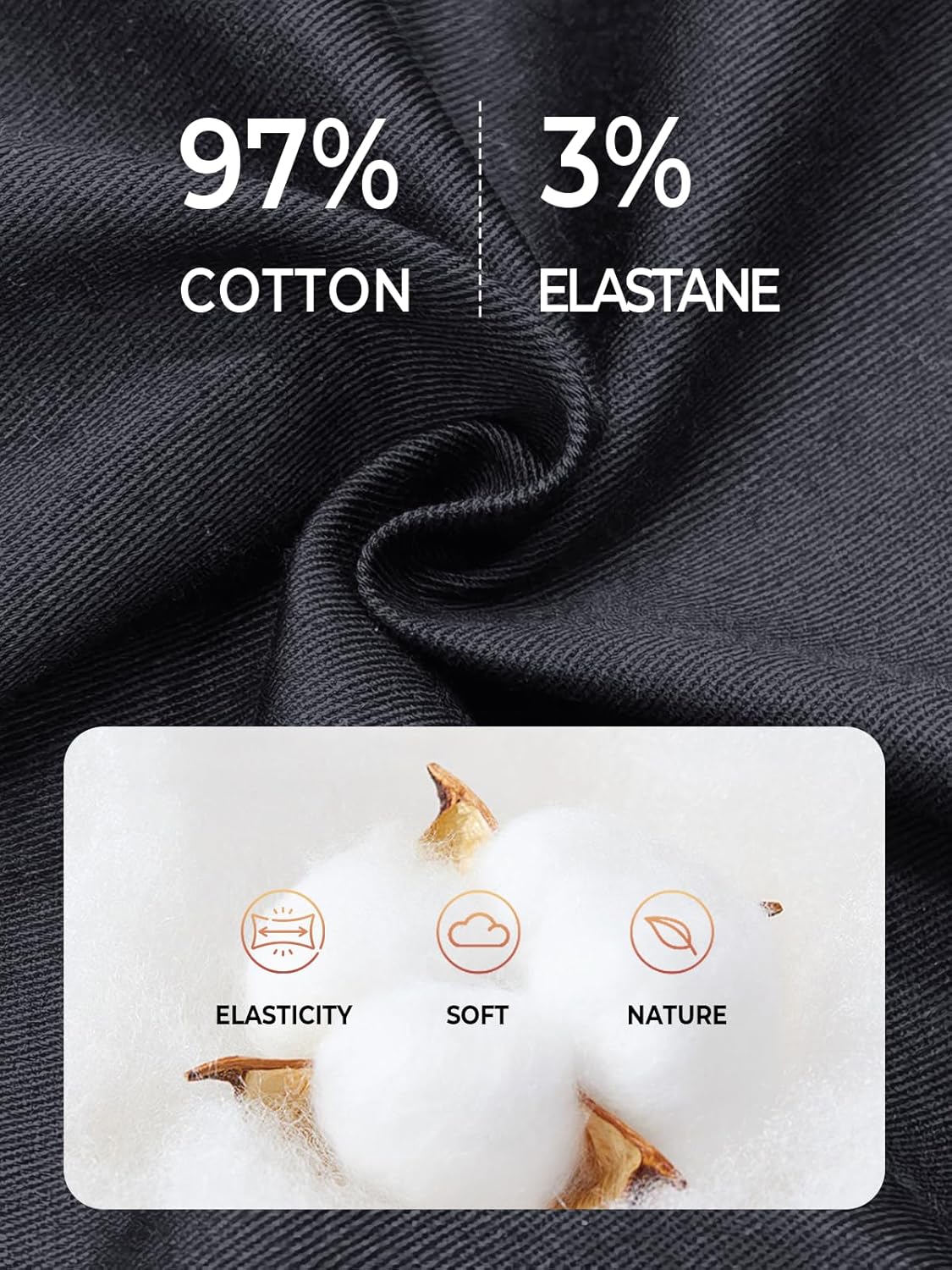 • Fabric type : 97% Cotton, 3% Elastane