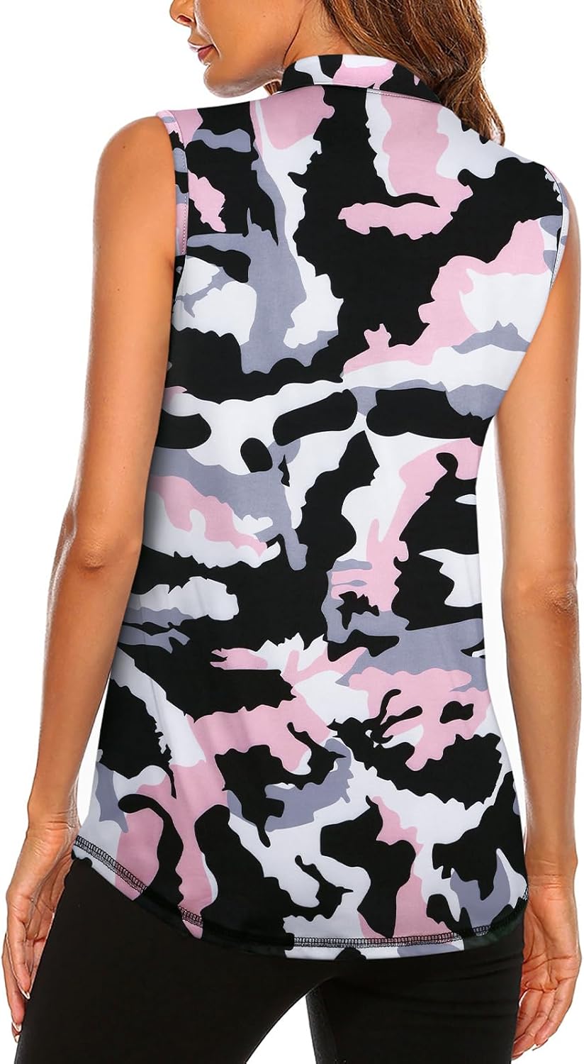 Koscacy Women's Sleeveless Golf Tennis Polo Shirts Zip Up Dry Fit Workout Tank Tops Athletic Shirt