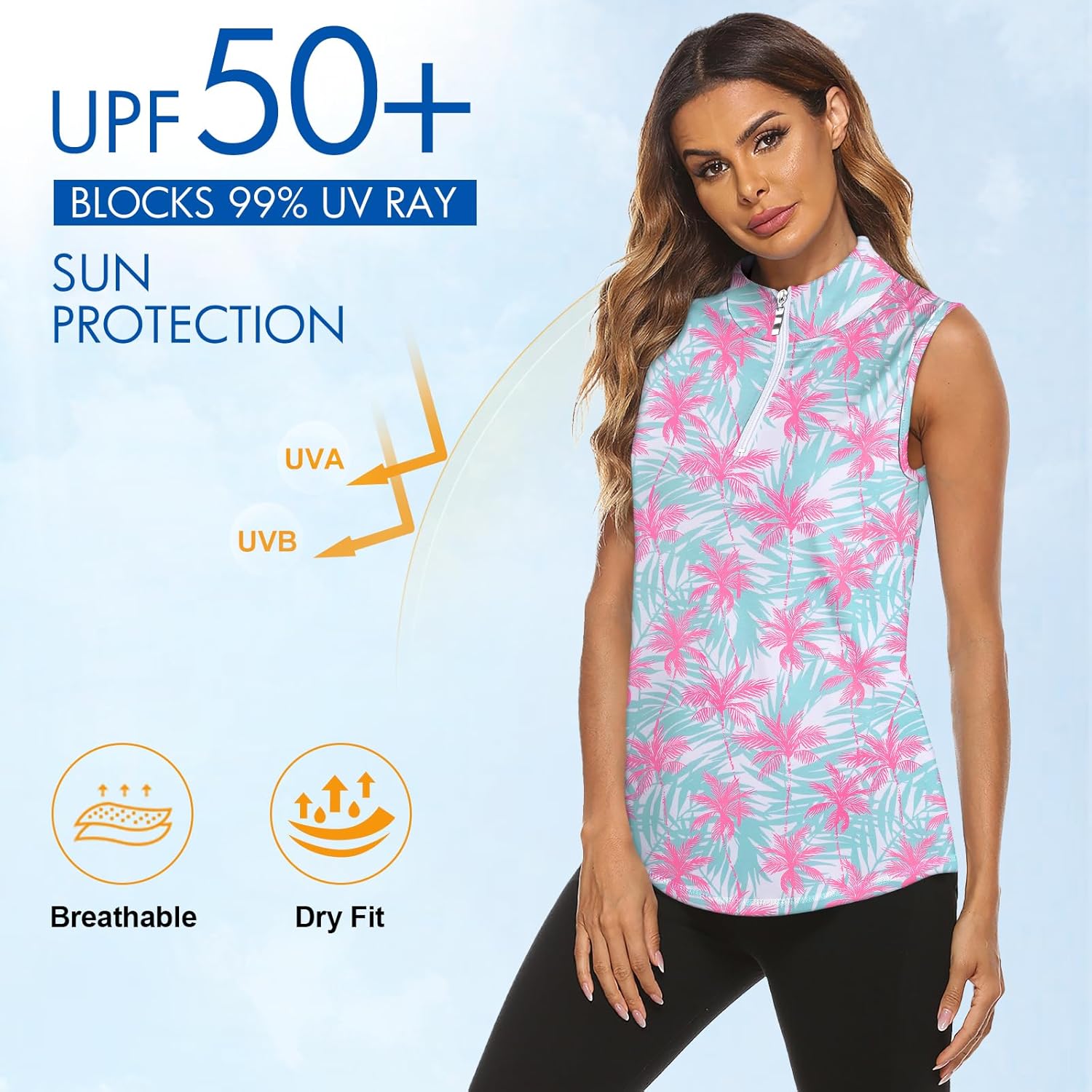 Koscacy Women's Sleeveless Golf Tennis Polo Shirts Zip Up Dry Fit Workout Tank Tops Athletic Shirt