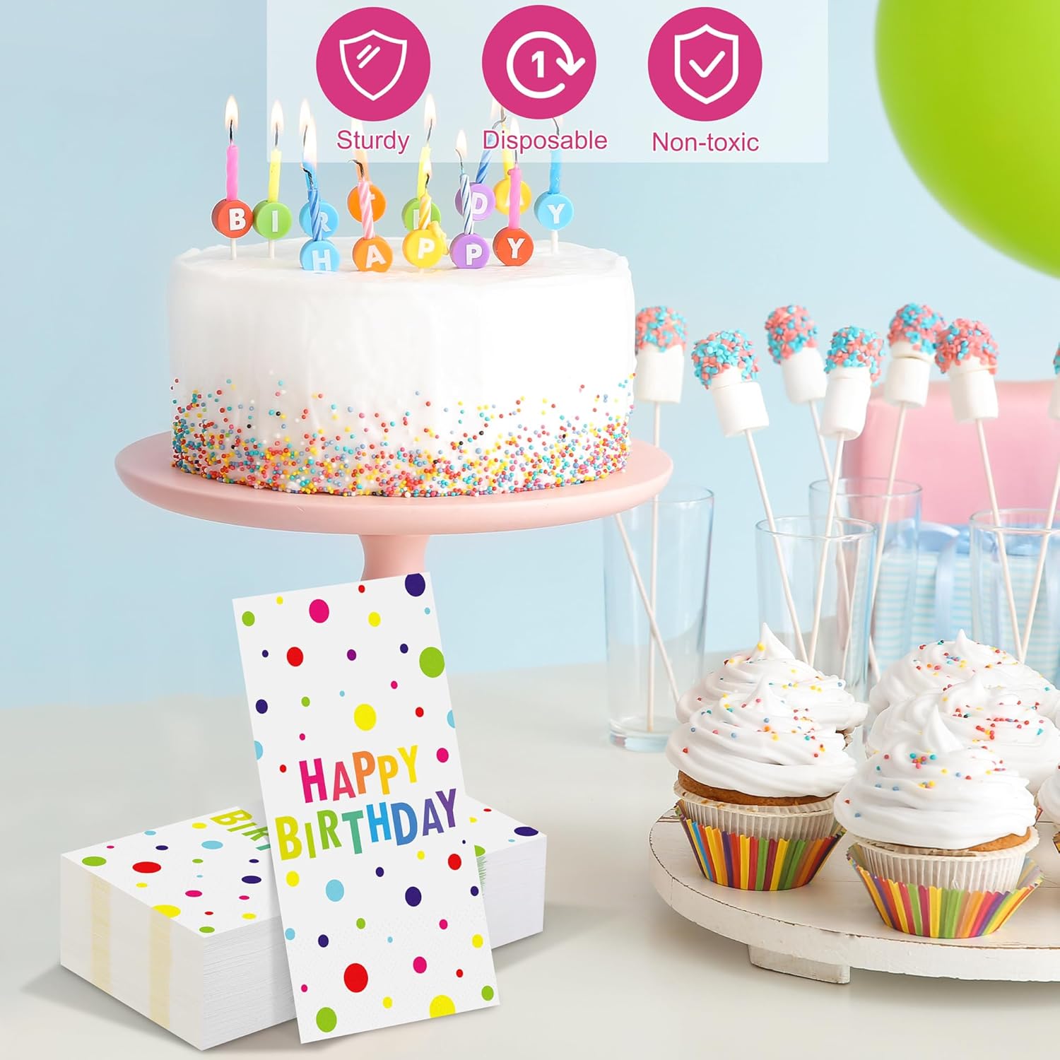 - Exclusive design: our birthday party napkins feature a vibrant design with colorful polka dots and the phrase "HAPPY BIRTHDAY," carefully crafted by our own staff; these paper napkins are novel and appealing, impressing your guests with their fun and creativity, and adding an extra layer of excitement to your celebration