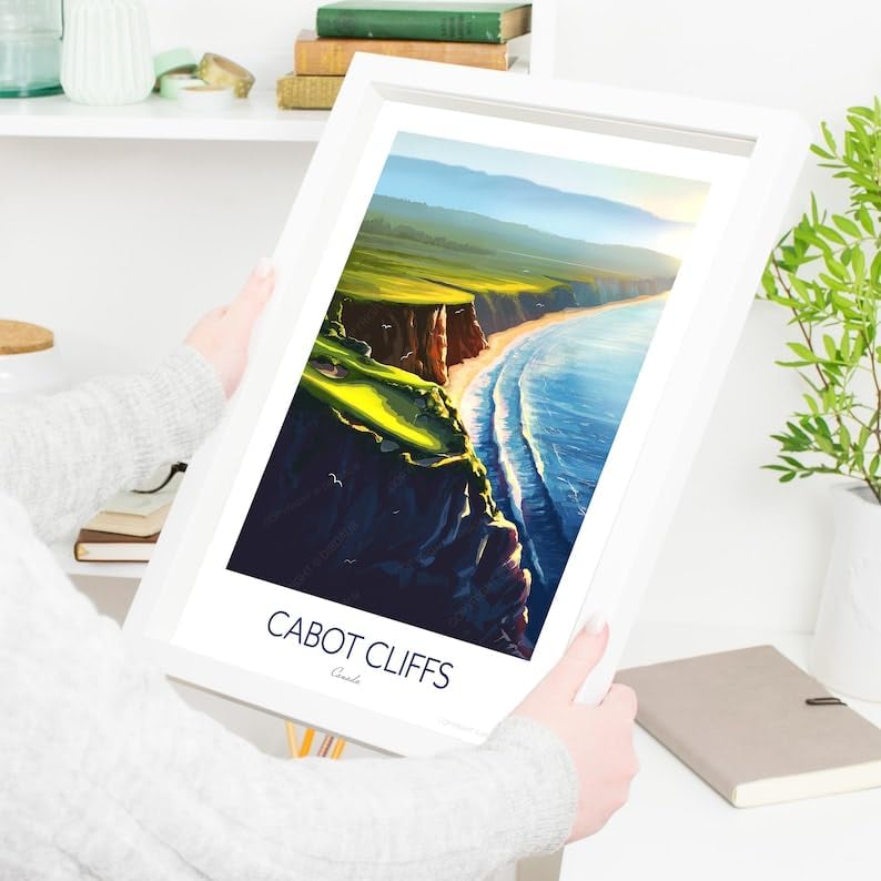 Nationcog Cabot Cliffs Golf Print; 16th Hole - Golf Poster Canada; Coastal Golf Art; Golf Landscape Illustration; Scenic Golf Painting; Luxury Golf Resort Print (Unframed) (24x36)