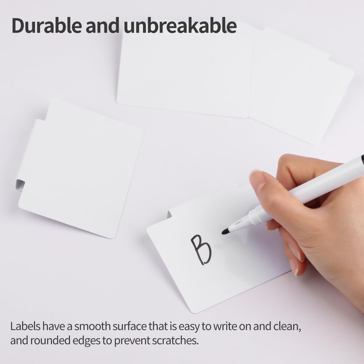 - Premium Material: Made of sturdy PVC material, these basket labels and clips are durable and unbreakable, ensuring long-lasting use. The smooth surface is easy to write on and clean, and rounded edges prevent scratches.