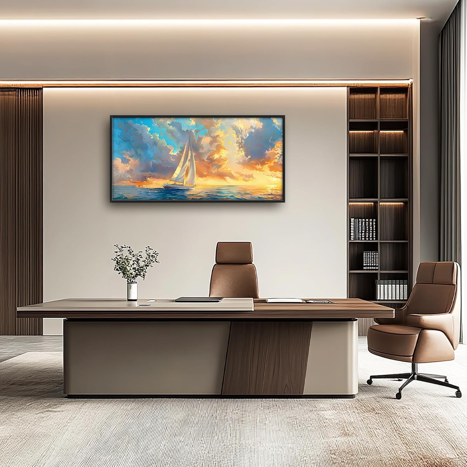 Large Ocean Sailboat Framed Wall Art for Living Room Blue Coastal Pictures Wall Decor Ocean Canvas Print Painting Artwork Modern Home Decorations for Living Room Bedroom Office 60x30 inch