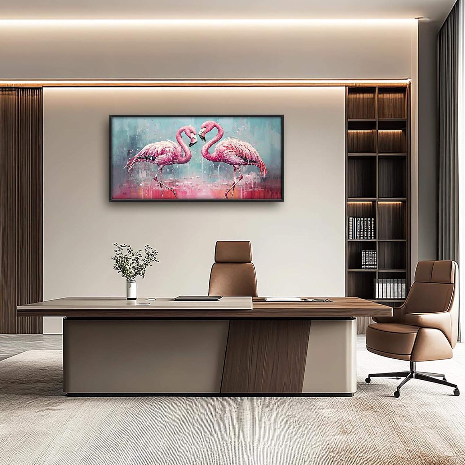 Large Flamingo Framed Wall Art for Living Room Flamingo Pictures Wall Decor Tropical Wildlife Painting Artwork Print Painting Home Decoration for Bathroom Bedroom Office 60x30 inch