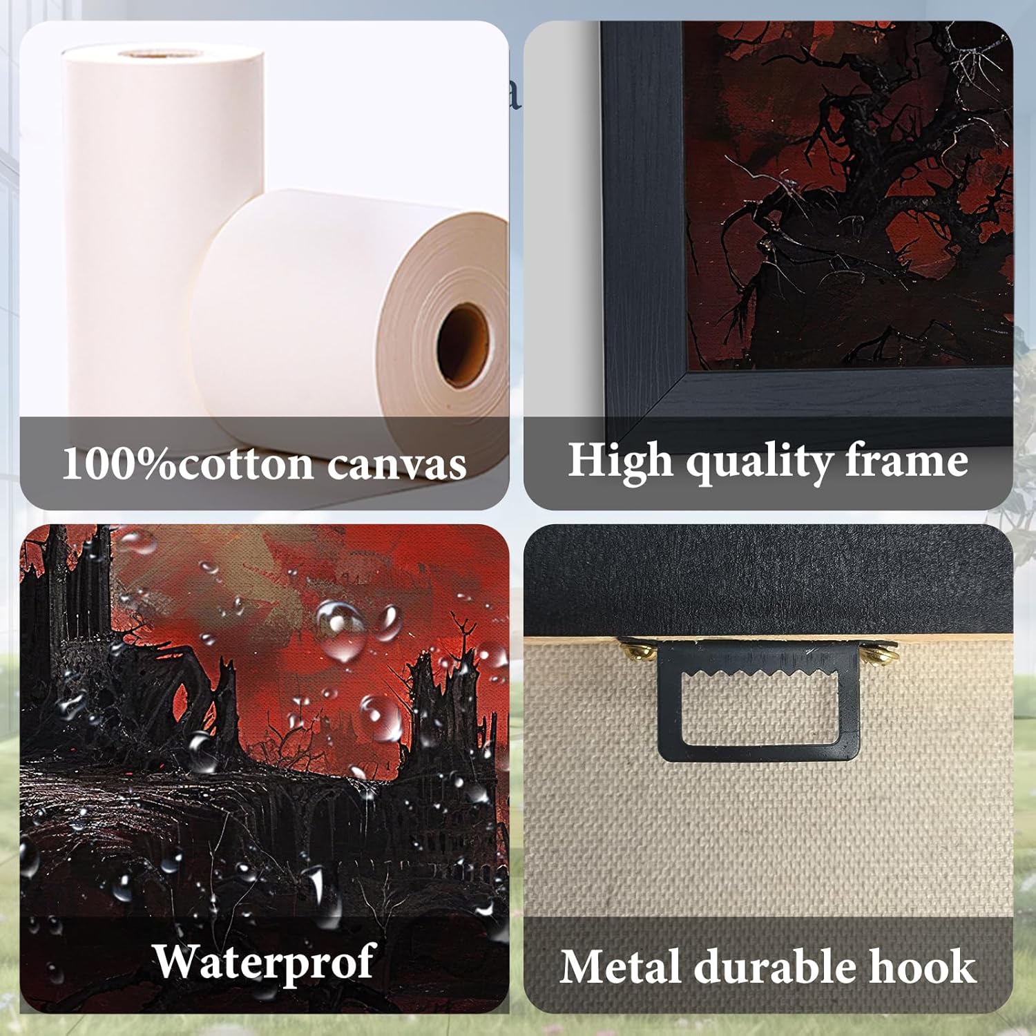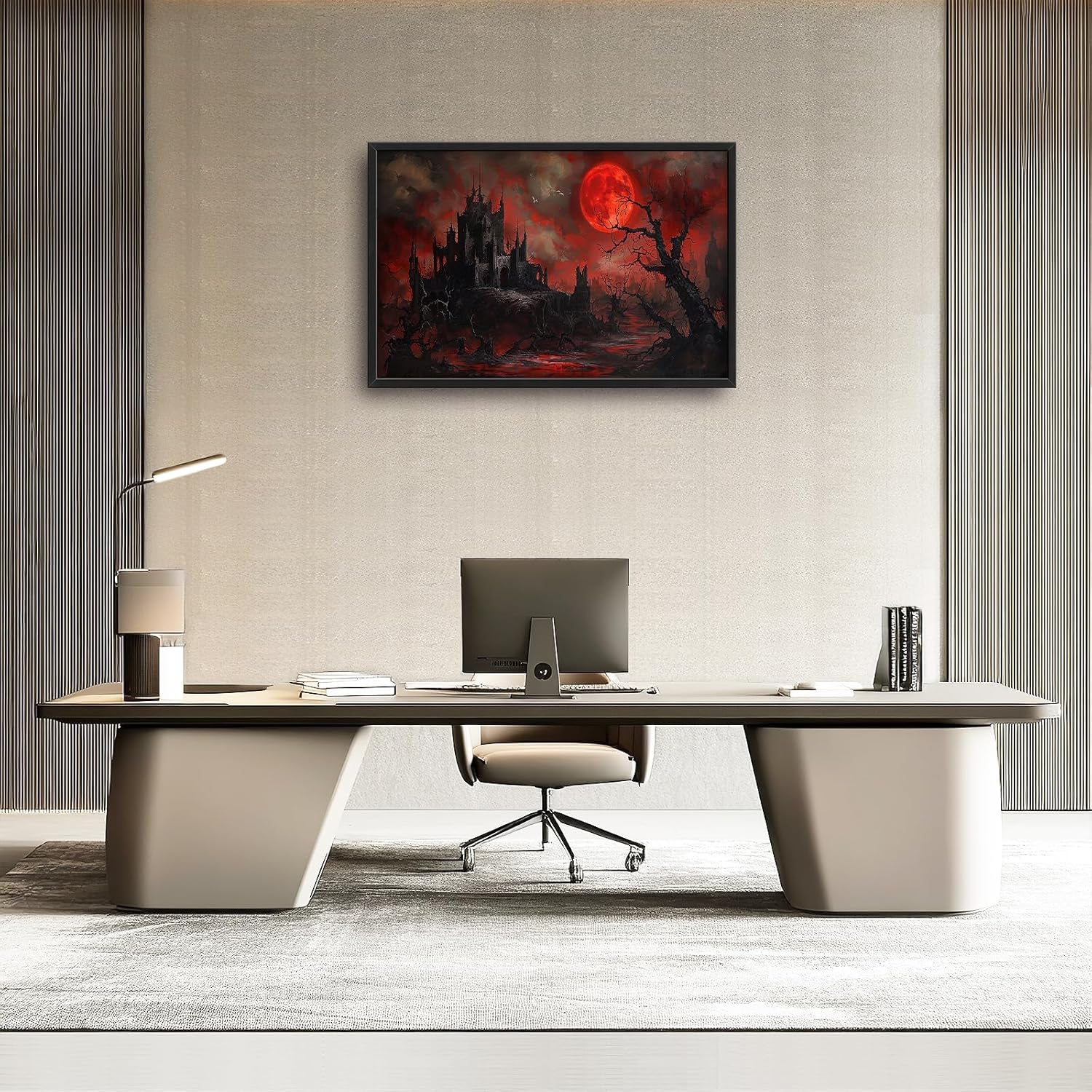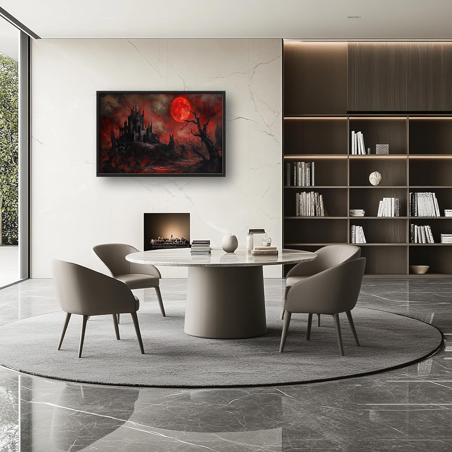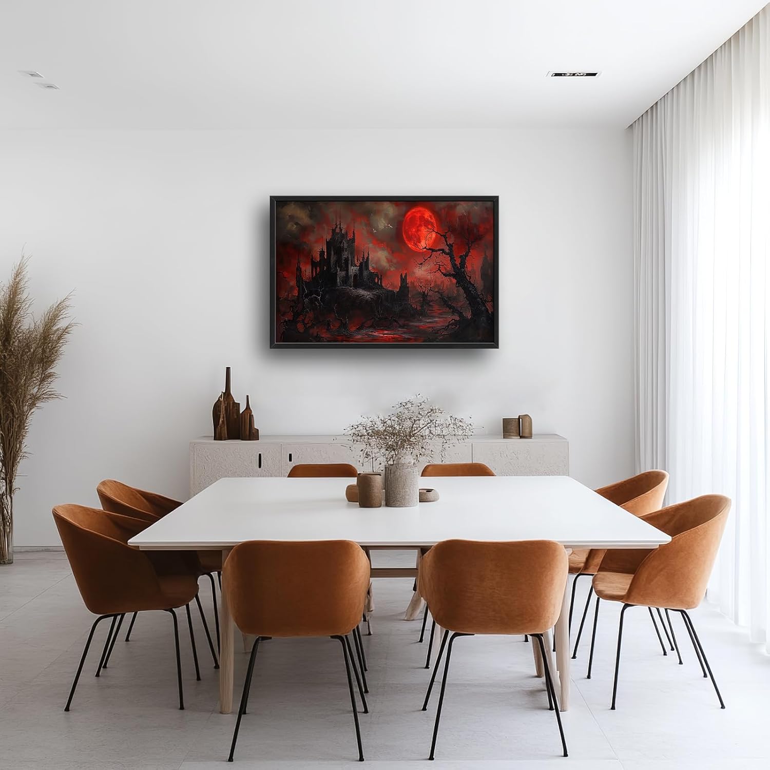 Large Gothic Spooky Haunted House Framed Wall Art for Living Room Dark Academia Castle Pictures Wall Decor Goth Print Painting Artwork Home Decorations for Gothic Room Bedroom Office 36x24 inch