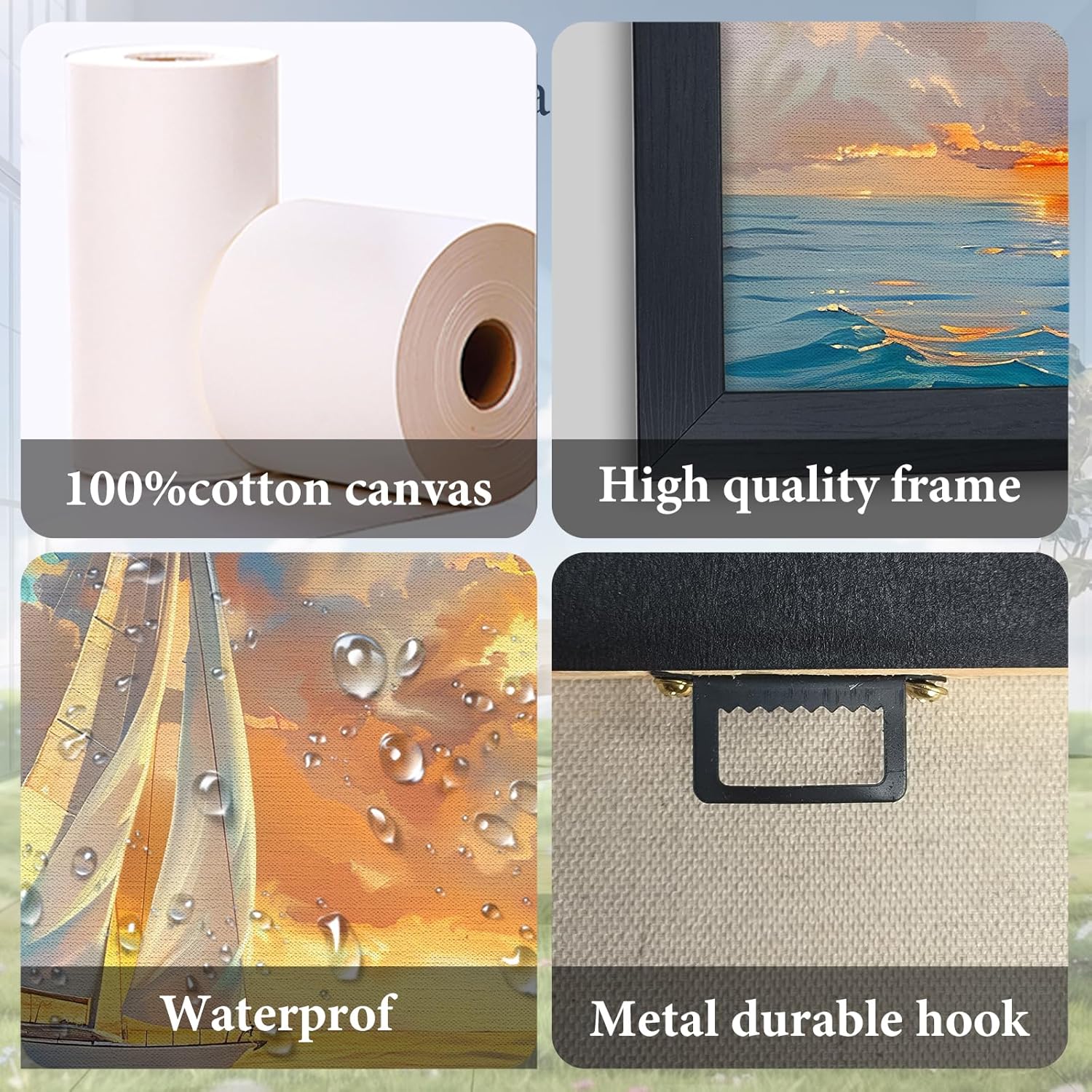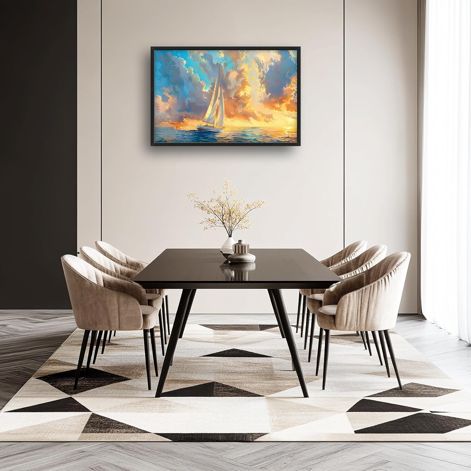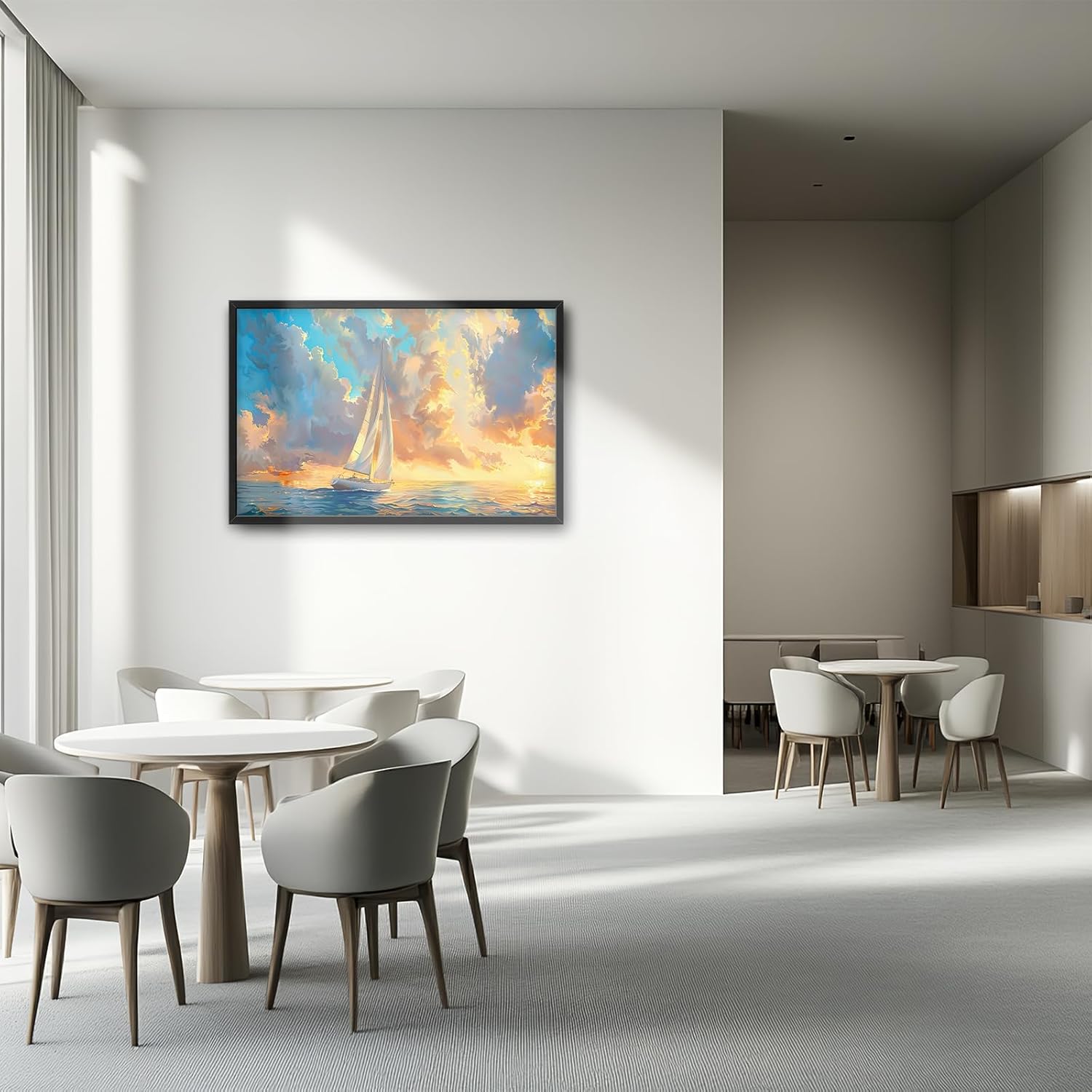 Large Ocean Sailboat Framed Wall Art for Living Room Blue Coastal Pictures Wall Decor Ocean Canvas Print Painting Artwork Modern Home Decorations for Living Room Bedroom Office 36x24 inch