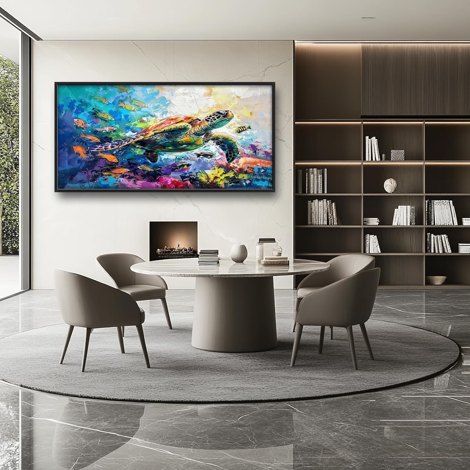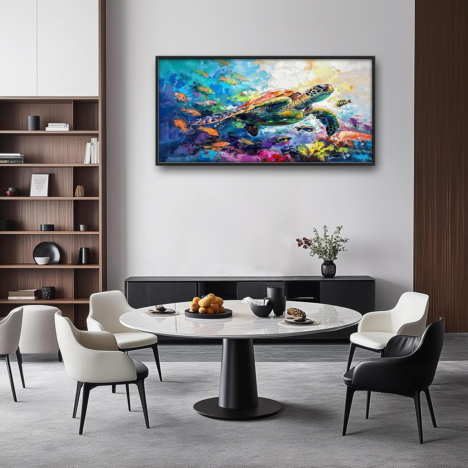 Large Sea turtle Framed Wall Art for Living Room Ocean Sea Turtle Pictures Canvas Coastal Beach Print Painting Artwork Nautical Home Decorations for Bathroom Bedroom Office 60x30 inch