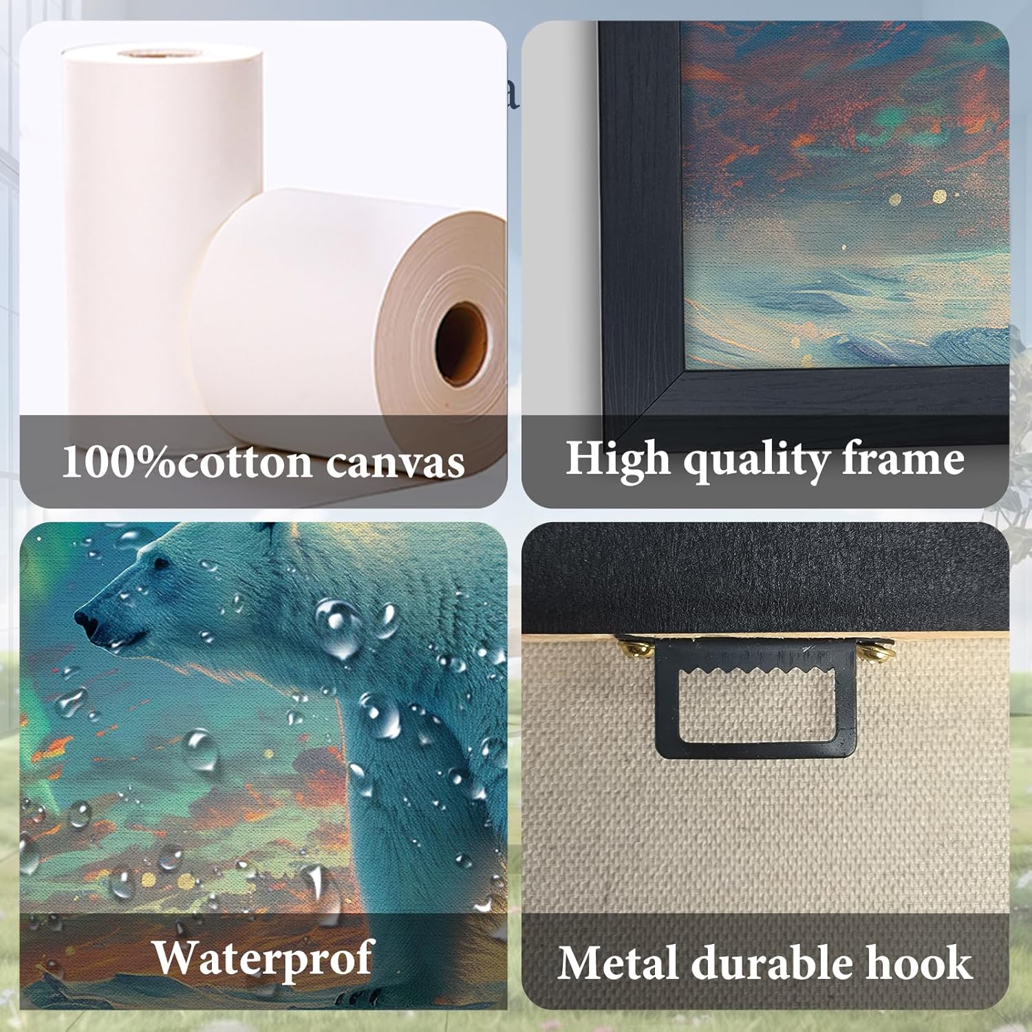 Large Polar Bear Framed Wall Art for Living Room White Polar Bear Pictures Wall Decor Aurora Canvas Print Painting Artwork Modern Home Decorations for Bedroom Office 60x30 inch
