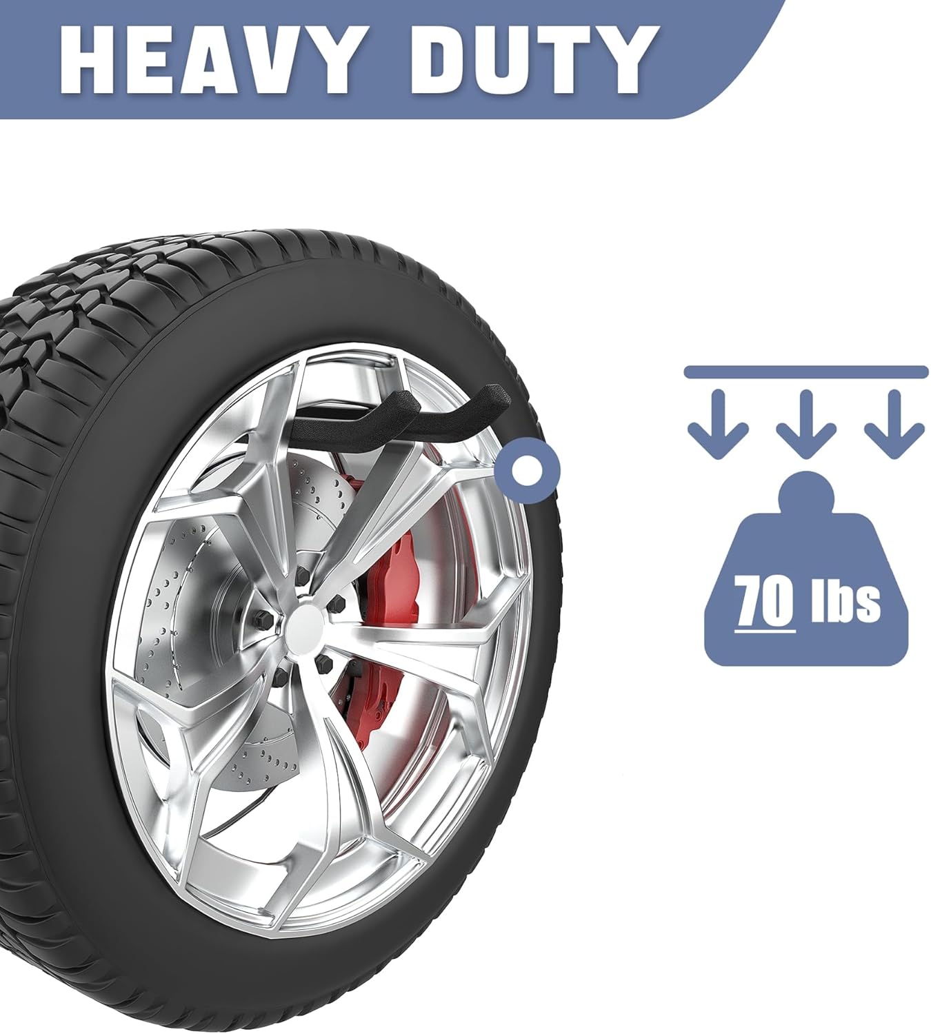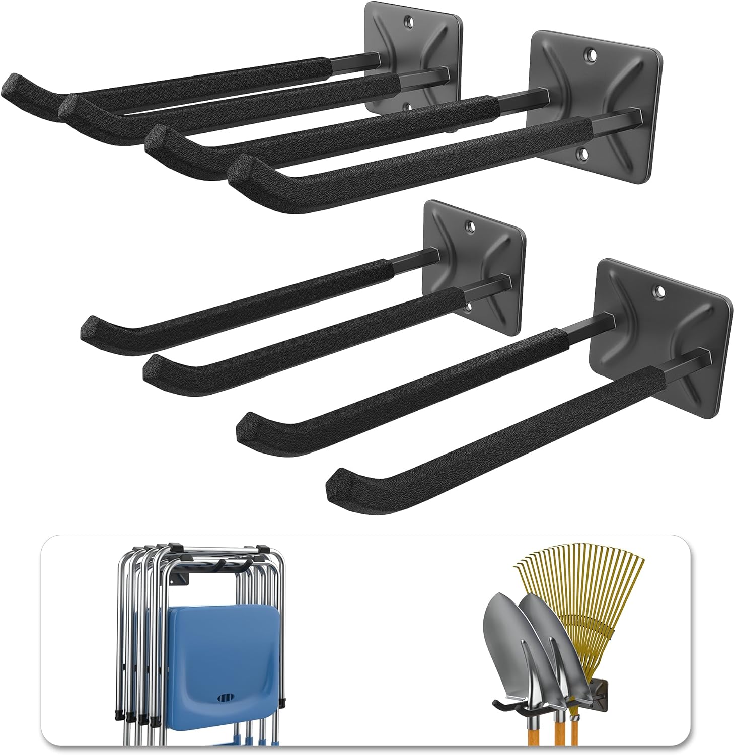 WALMANN Wall Mounted Garage Hooks, Heavy Duty 12-inch Tool Hooks for Hanging, Tool Hangers for Car Tires, Ladders, Folding Chairs, Strollers, Garden Tools (Pack of 4)