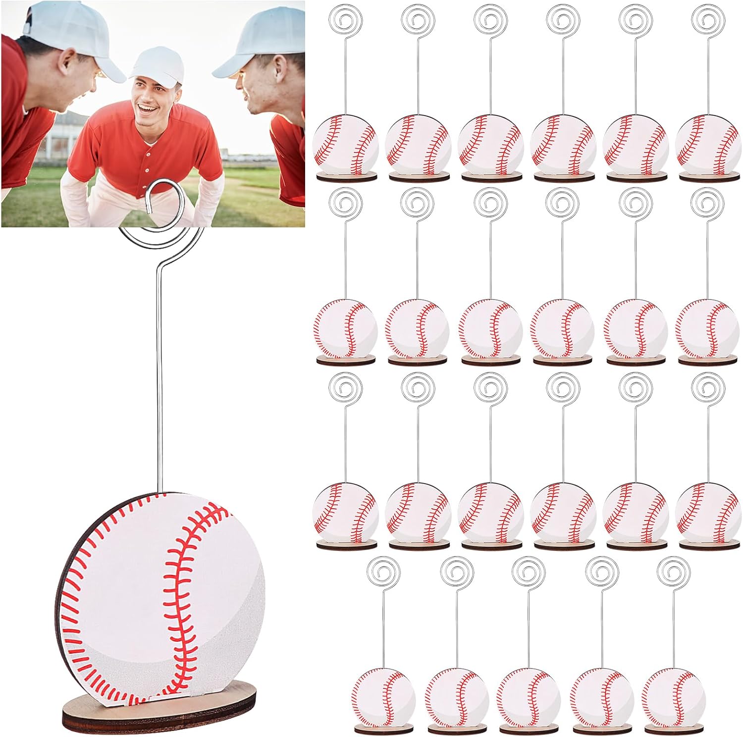 - 【🏅 Sports-Themed & Stylish Design】Baseball-shaped wooden base with sleek metal wire creates a sporty yet elegant look, perfect for sports lovers, themed parties, or adding a playful touch to weddings and offices.These sports ball note holders are perfect to add a more ballistic element to your party decorations and keep cards, photos or memos upright and in place even in busy environments or bustling events, suitable for sports enthusiasts.