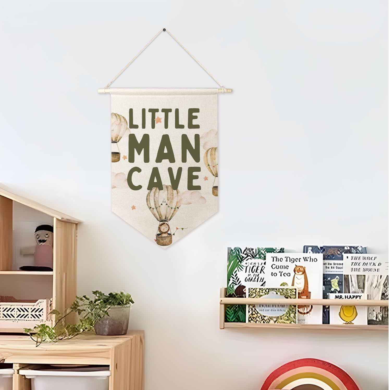 ArtisaEura Little Man Cave Wall Canvas Banners, Hot Air Balloon Nursery Decor, Baby Animal Hanging Display Pennant Banner Flags, Nursery Wall Decor for Kids Boys Room Bedroom Playroom