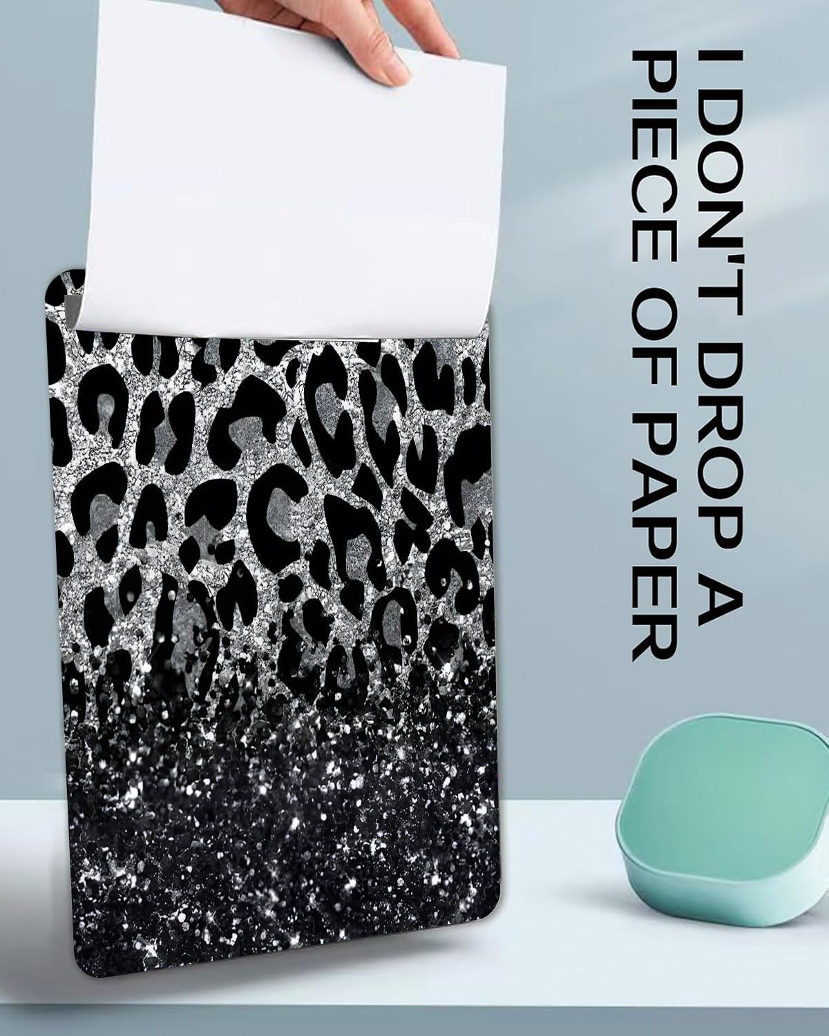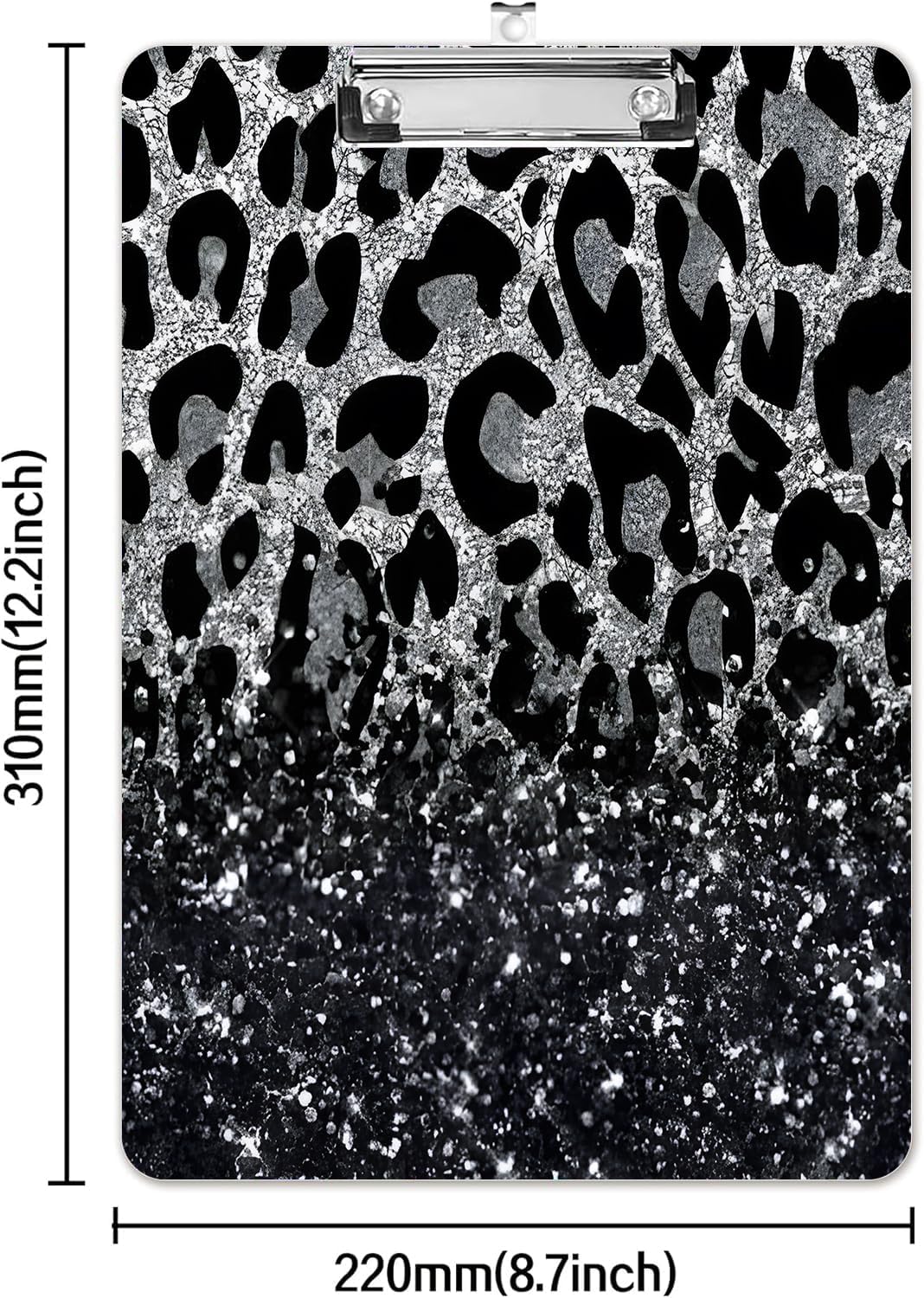 Fashion A4 Clipboard, Standard Letter Size 9" x 12.5", Decorative Wooden Clipboard with Low Profile Metal Clip for Office, School, Teachers, and Students,Luxury Black Leopard