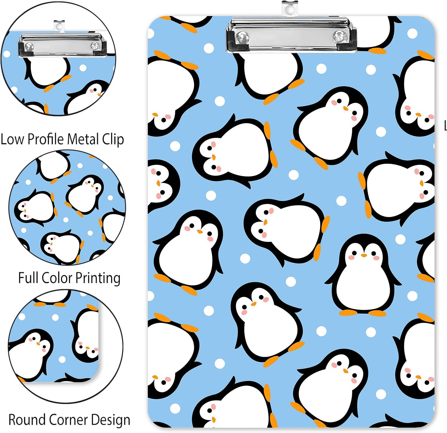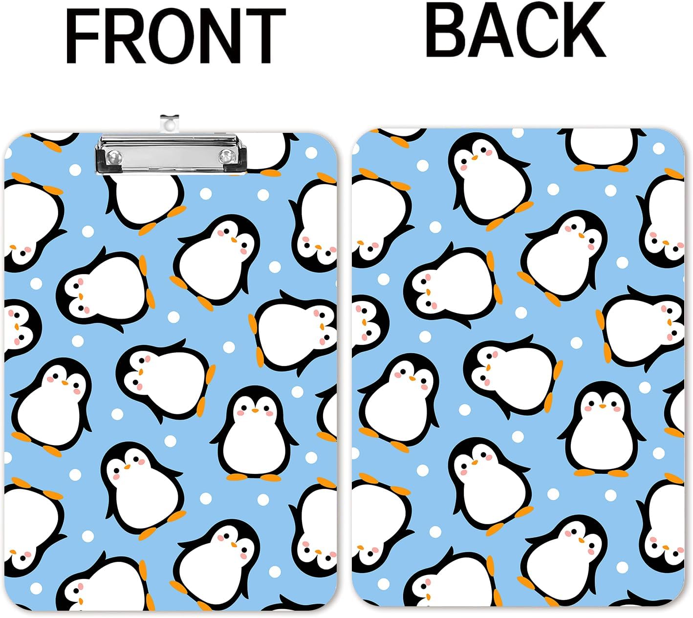 Fashion A4 Clipboard, Standard Letter Size 9" x 12.5", Decorative Wooden Clipboard with Low Profile Metal Clip for Office, School, Teachers, and Students, Cute Penguin