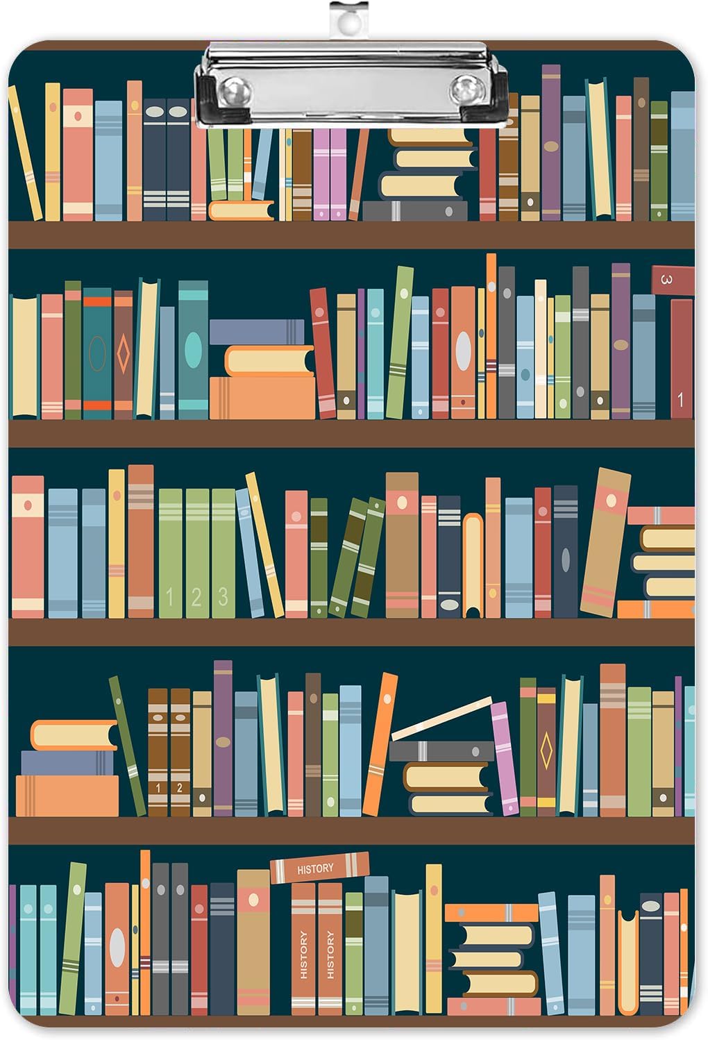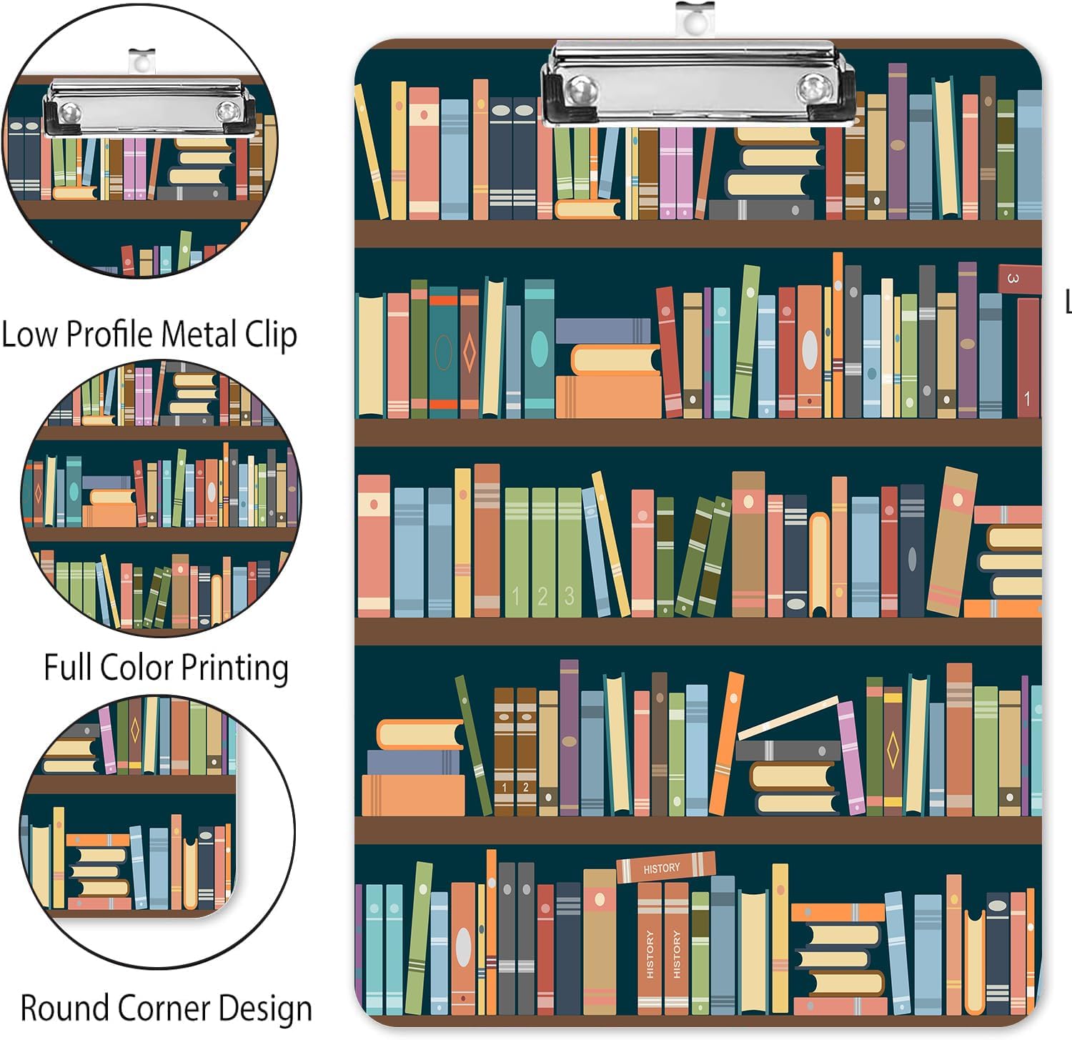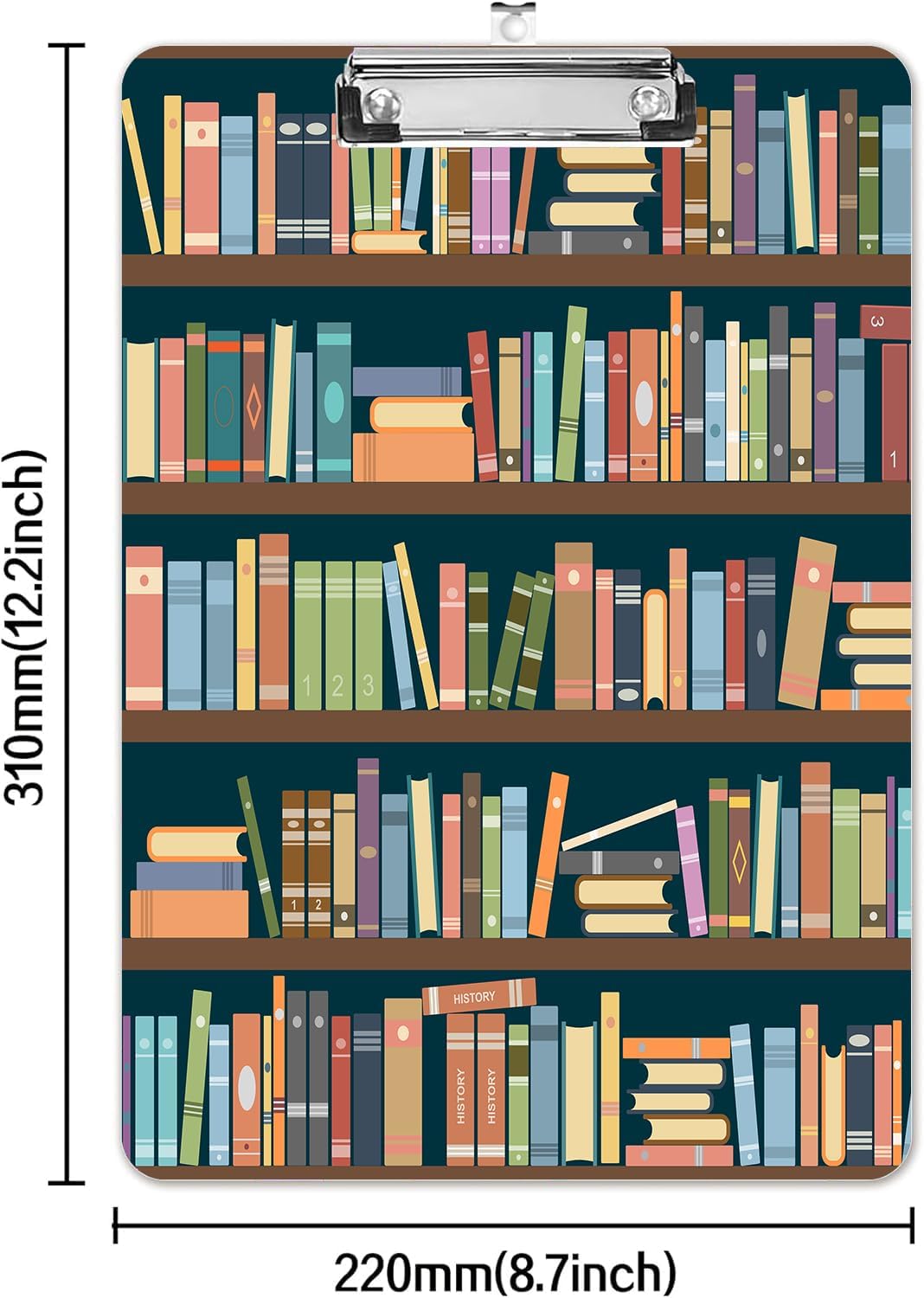 Fashion A4 Clipboard, Standard Letter Size 9" x 12.5", Decorative Wooden Clipboard with Low Profile Metal Clip for Office, School, Teachers, and Students, Book Library