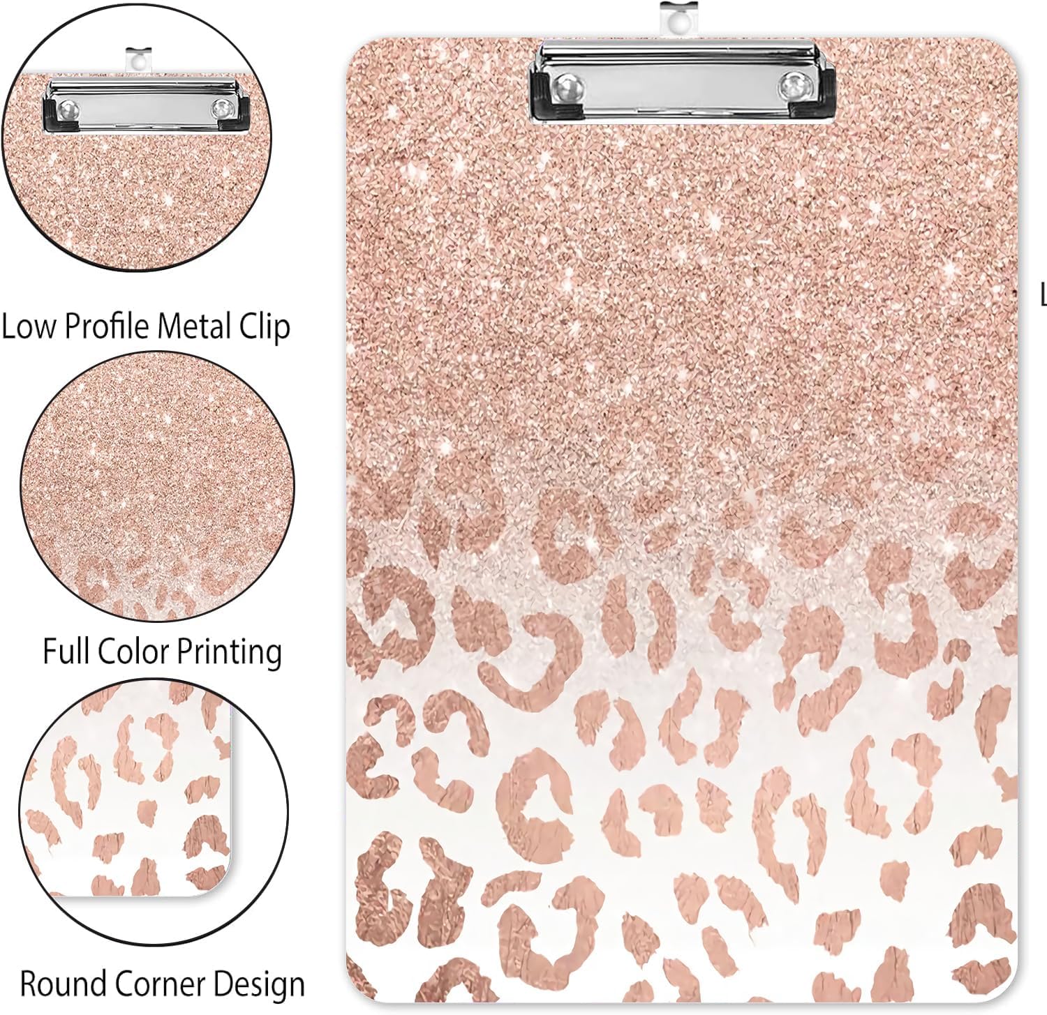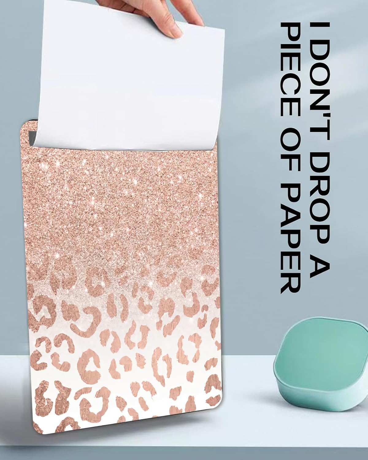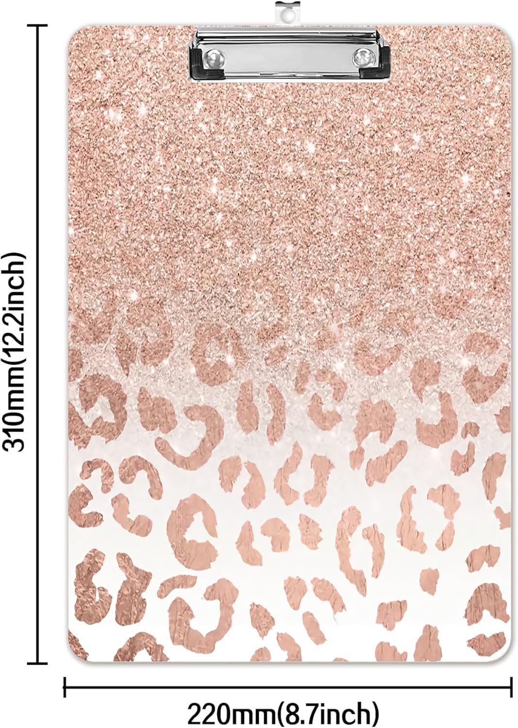 Fashion A4 Clipboard, Standard Letter Size 9" x 12.5", Decorative Wooden Clipboard with Low Profile Metal Clip for Office, School, Teachers, and Students, Rose Gold Leopard