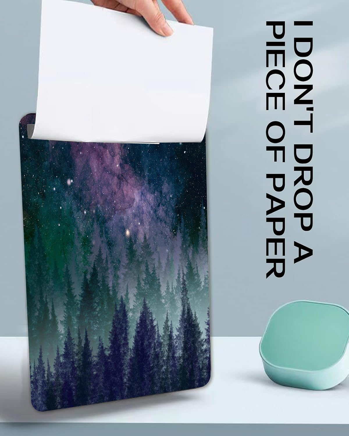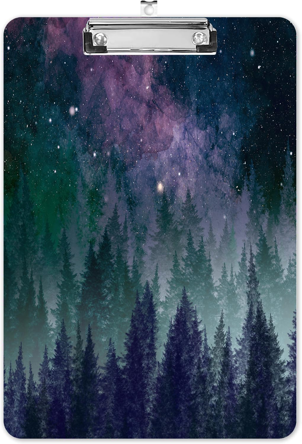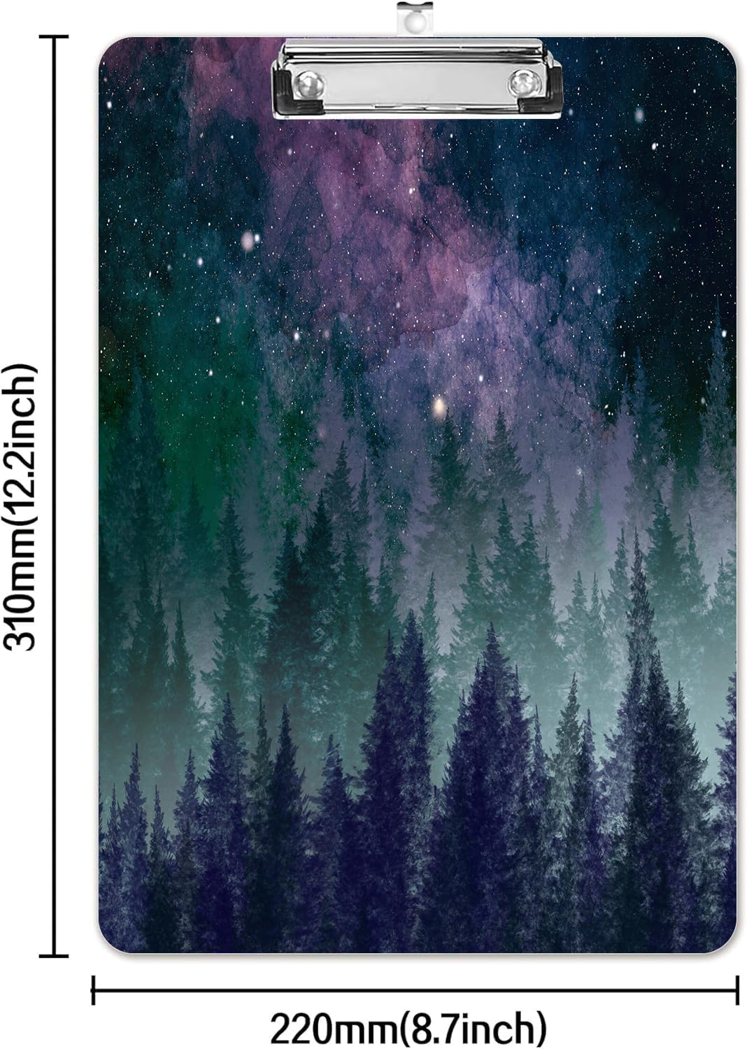 Fashion A4 Clipboard, Standard Letter Size 9" x 12.5", Decorative Wooden Clipboard with Low Profile Metal Clip for Office, School, Teachers, and Students, Galaxy Forest