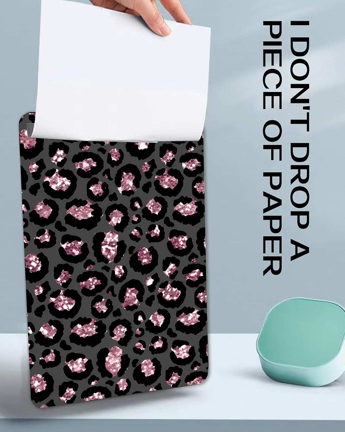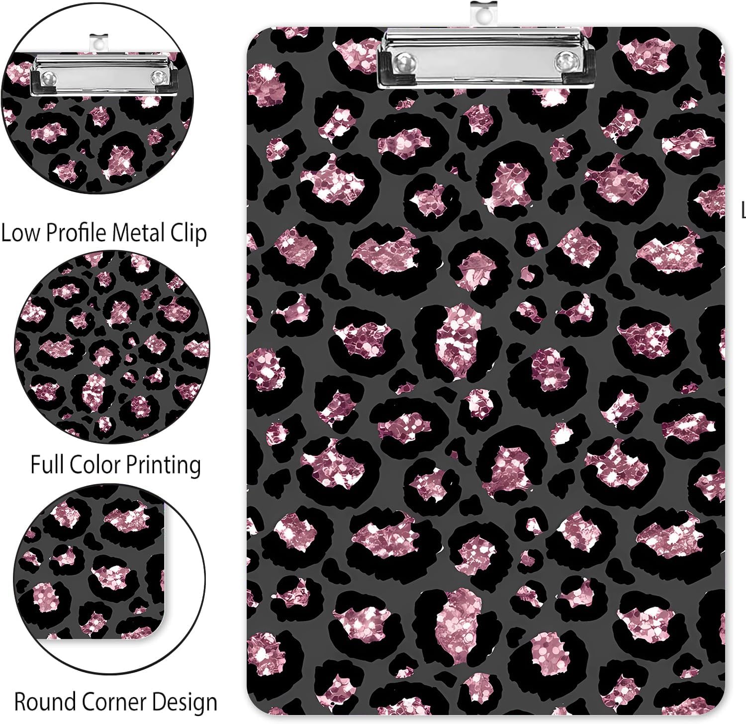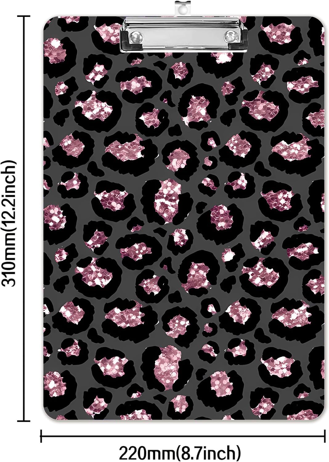 Fashion A4 Clipboard, Standard Letter Size 9" x 12.5", Decorative Wooden Clipboard with Low Profile Metal Clip for Office, School, Teachers, and Students, Pink Leopard