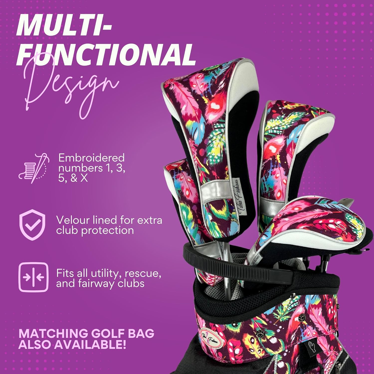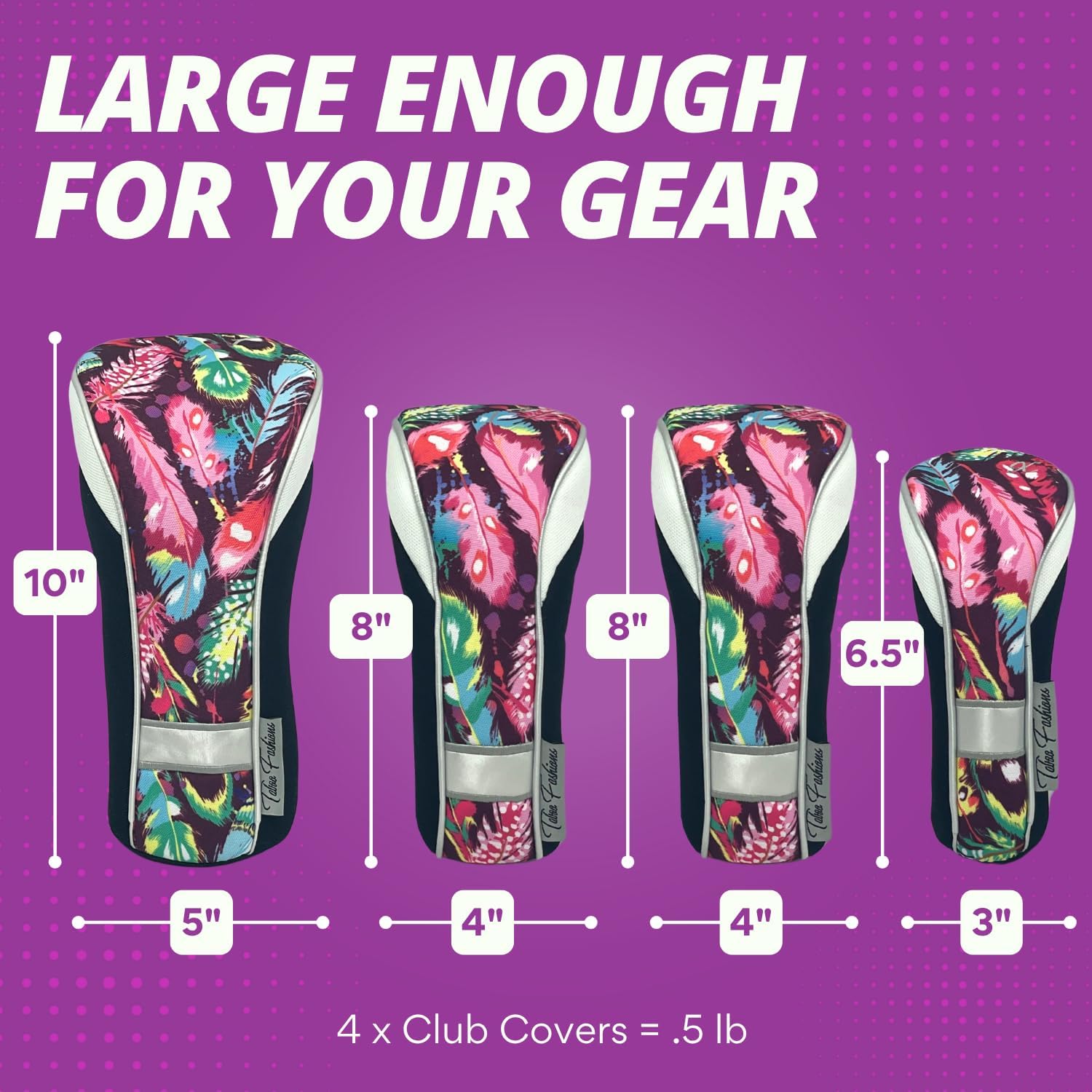 - CUSTOM FIT FOR WOMEN'S GOLF CLUBS: This 4-pack set includes headcovers numbered #1, #3, #5, and X, designed to fit most fairway woods, hybrids, rescue clubs, and oversized drivers. Embroidered numbers make club selection quick and easy during play.
