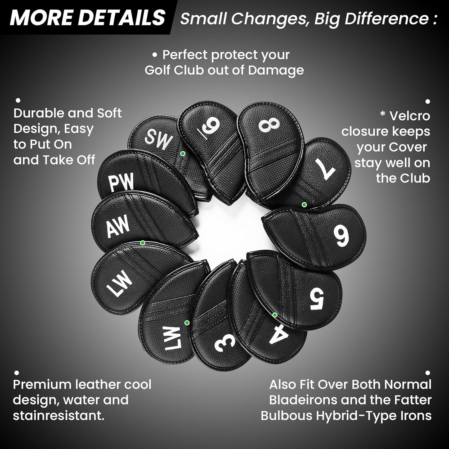 - Universal Fit, Easy On & Off: Slip these universal iron head covers on and off with ease. They fit most standard irons and wedges securely, staying in place as you play. Imagine moving smoothly from shot to shot—your rhythm never breaks, your clubs always stay protected.