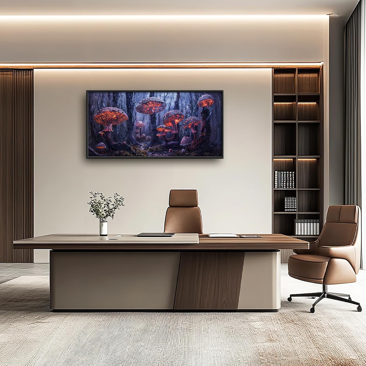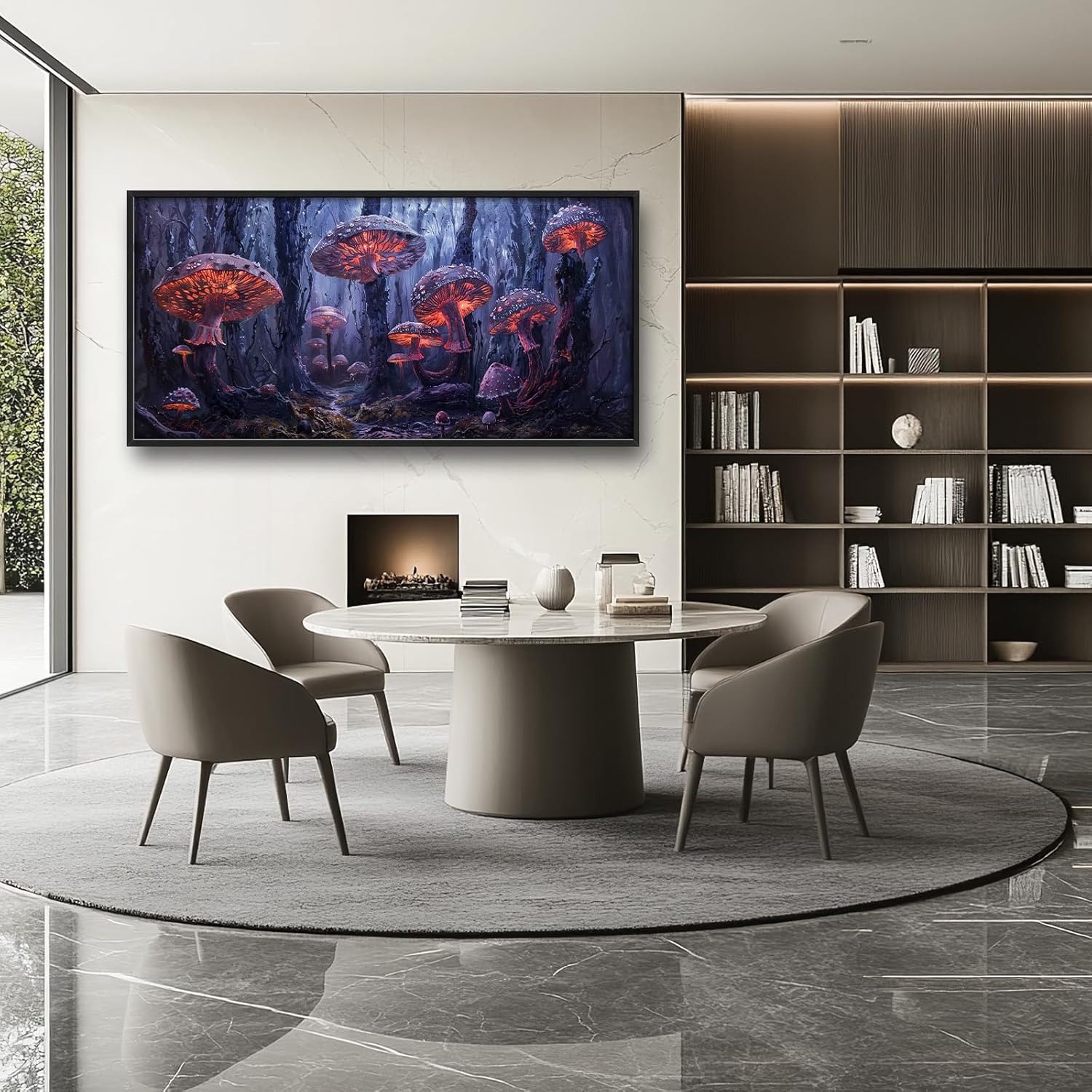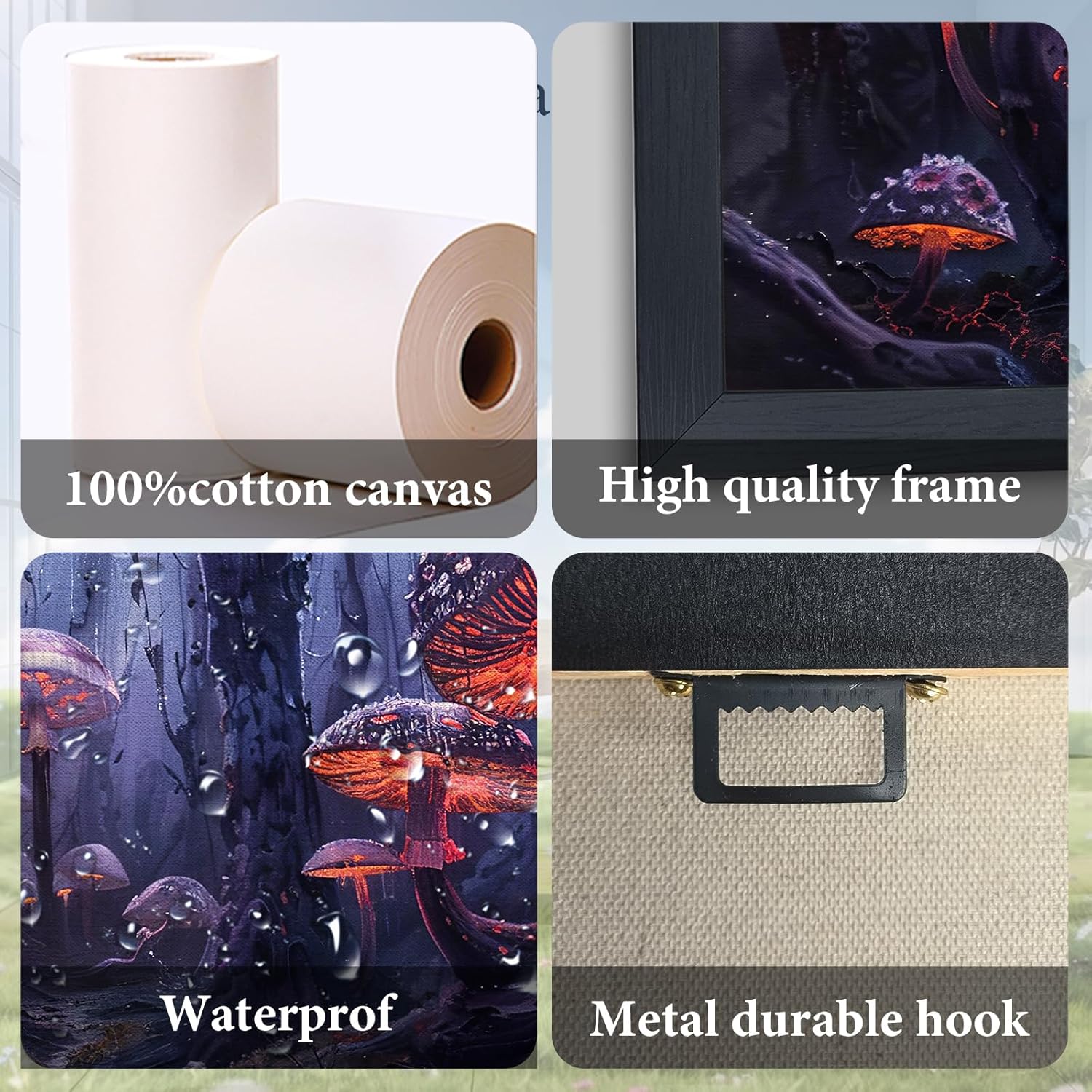 Large Mushroom Framed Wall Art for Living Room Forest Mushroom Canvas Wall Decor Rustic Pictures Print Painting Artwork Modern Home Decorations for Bedroom Office 60x30 inch
