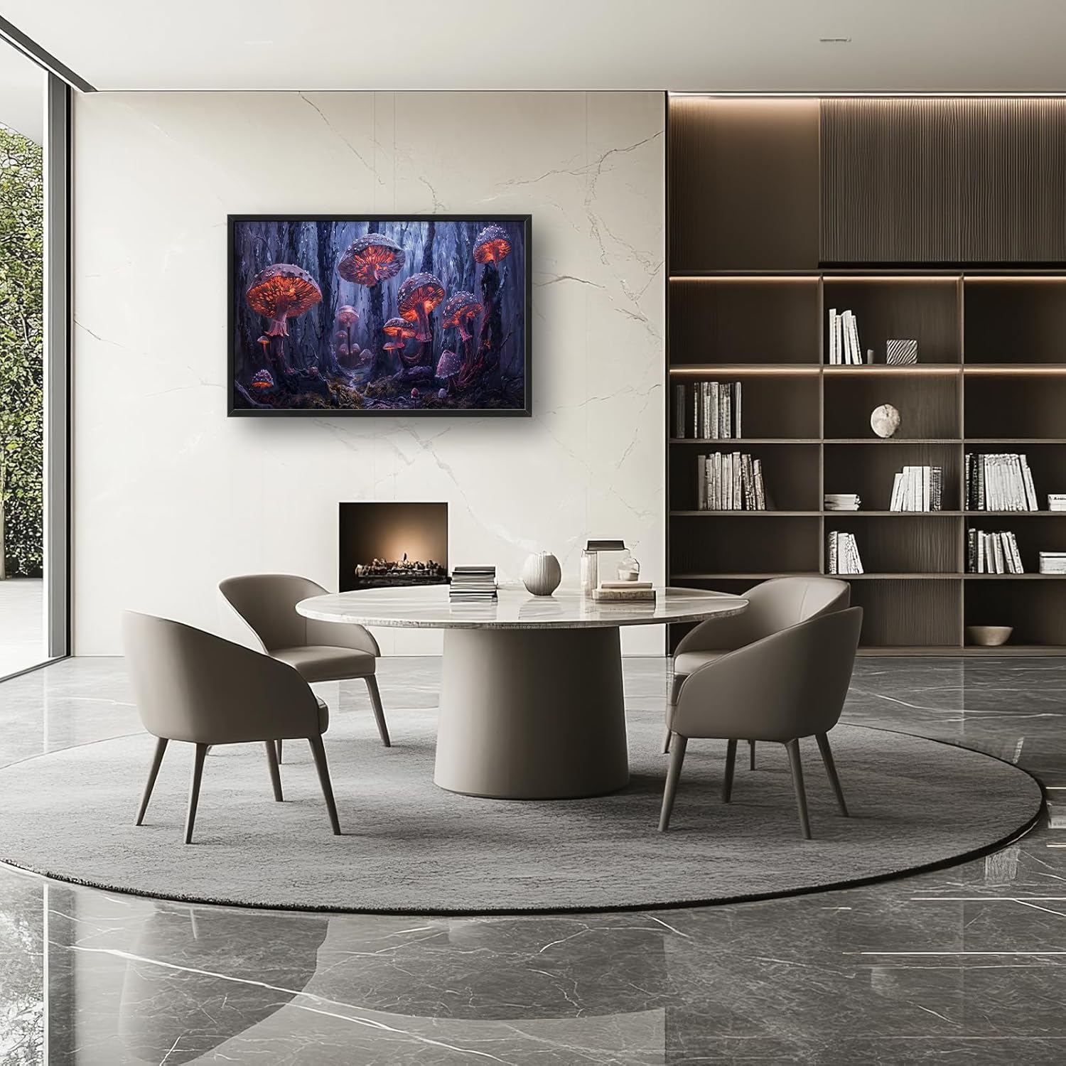 Large Mushroom Framed Wall Art for Living Room Forest Mushroom Canvas Wall Decor Rustic Pictures Print Painting Artwork Modern Home Decorations for Bedroom Office 36x24 inch