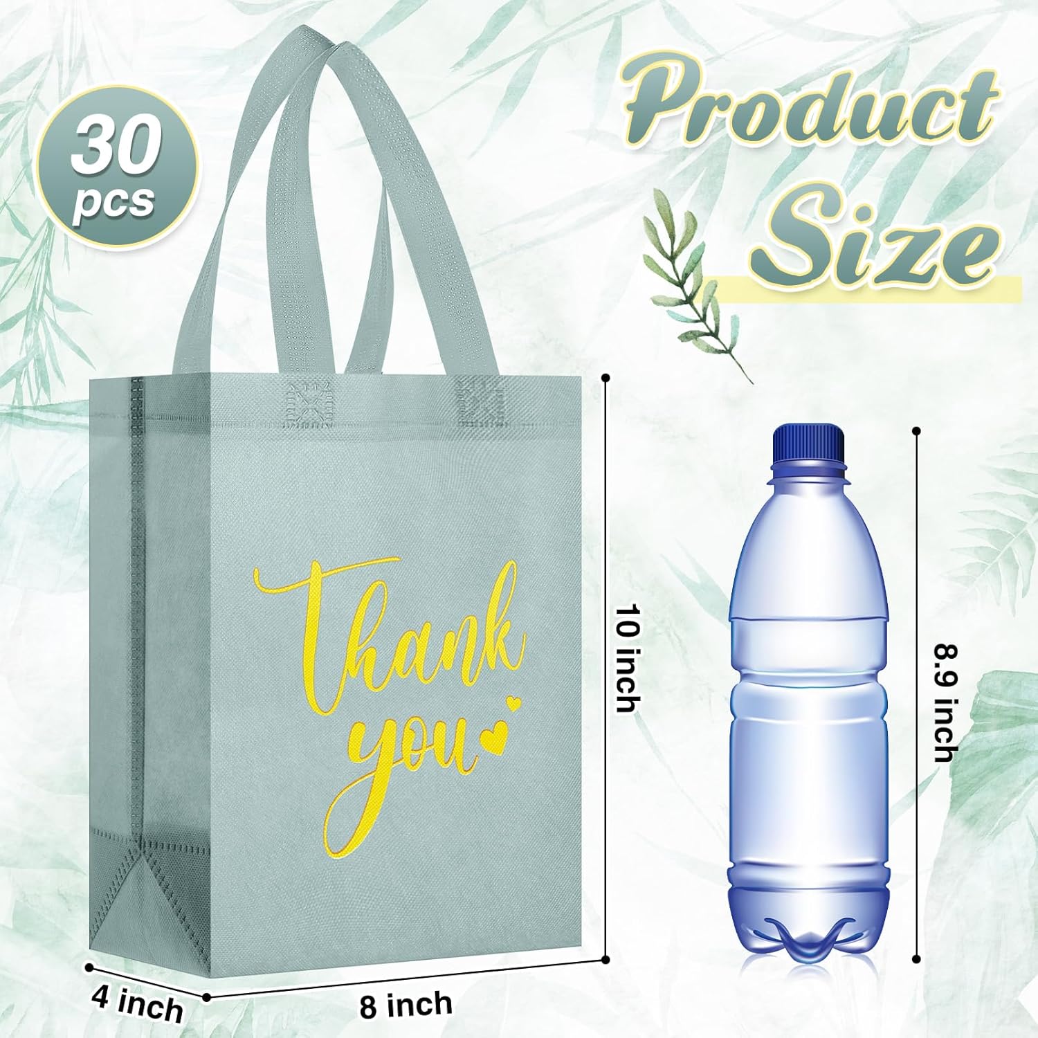 Sweetude 30 Pcs Thank You Gift Bags with Handles Bulk Reusable Goodie Bag Non Woven Foldable Handbag for Graduation Wedding Bridesmaid Gifts(10 x 8 x 4 Inch,Sage Green)