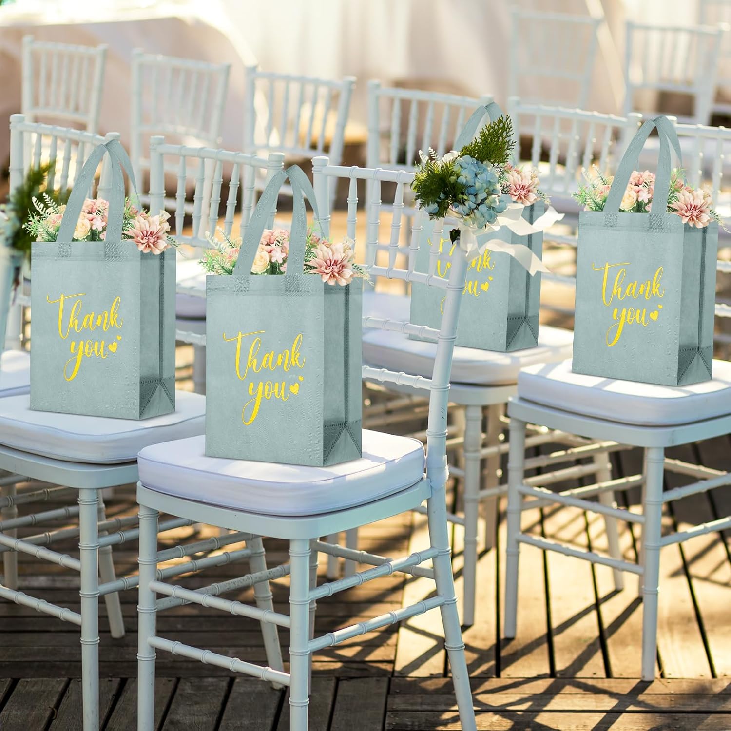 - Applicable for Parties and Daily Life: these thank you tote non woven bags are ideal for weddings and bridal showers, also suitable for birthday parties, baby showers, Thanksgiving, graduation ceremonies, afternoon tea parties, business banquets and other occasions; There is a large enough capacity to hold gifts, jewelry, lipstick, souvenirs, toys, clothes, snacks, candy and more, providing you and your guests with a wonderful party atmosphere