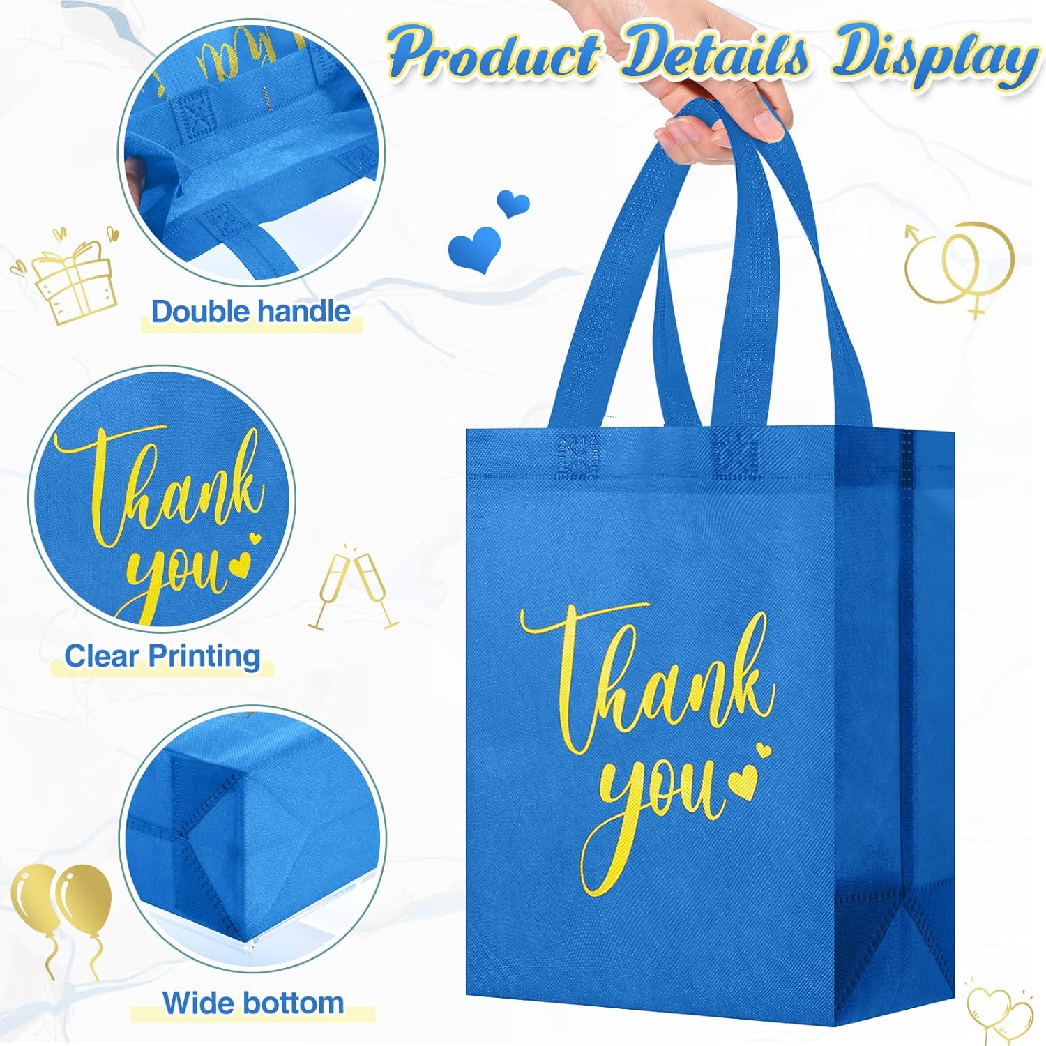 - Applicable for Parties and Daily Life: these thank you tote non woven bags are ideal for weddings and bridal showers, also suitable for birthday parties, baby showers, Thanksgiving, graduation ceremonies, afternoon tea parties, business banquets and other occasions; There is a large enough capacity to hold gifts, jewelry, lipstick, souvenirs, toys, clothes, snacks, candy and more, providing you and your guests with a wonderful party atmosphere