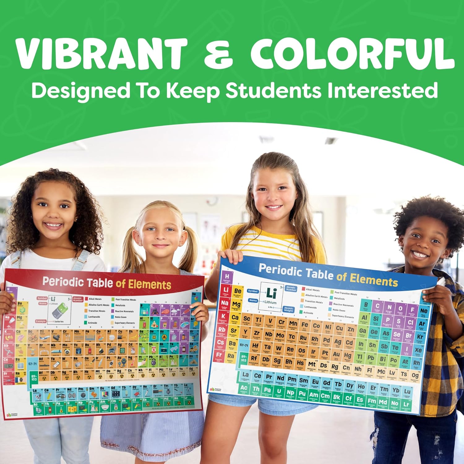 - Vibrant, Engaging Visuals That Stimulate Interest. Featuring bright, colorful periodic table wall art learning posters designs that captivate children's attention, its eye-catching colors and illustrations encourage engagement without being overstimulating, ensuring distraction-free learning. Beautiful and engaging classroom decor that can be seen even from a distance.