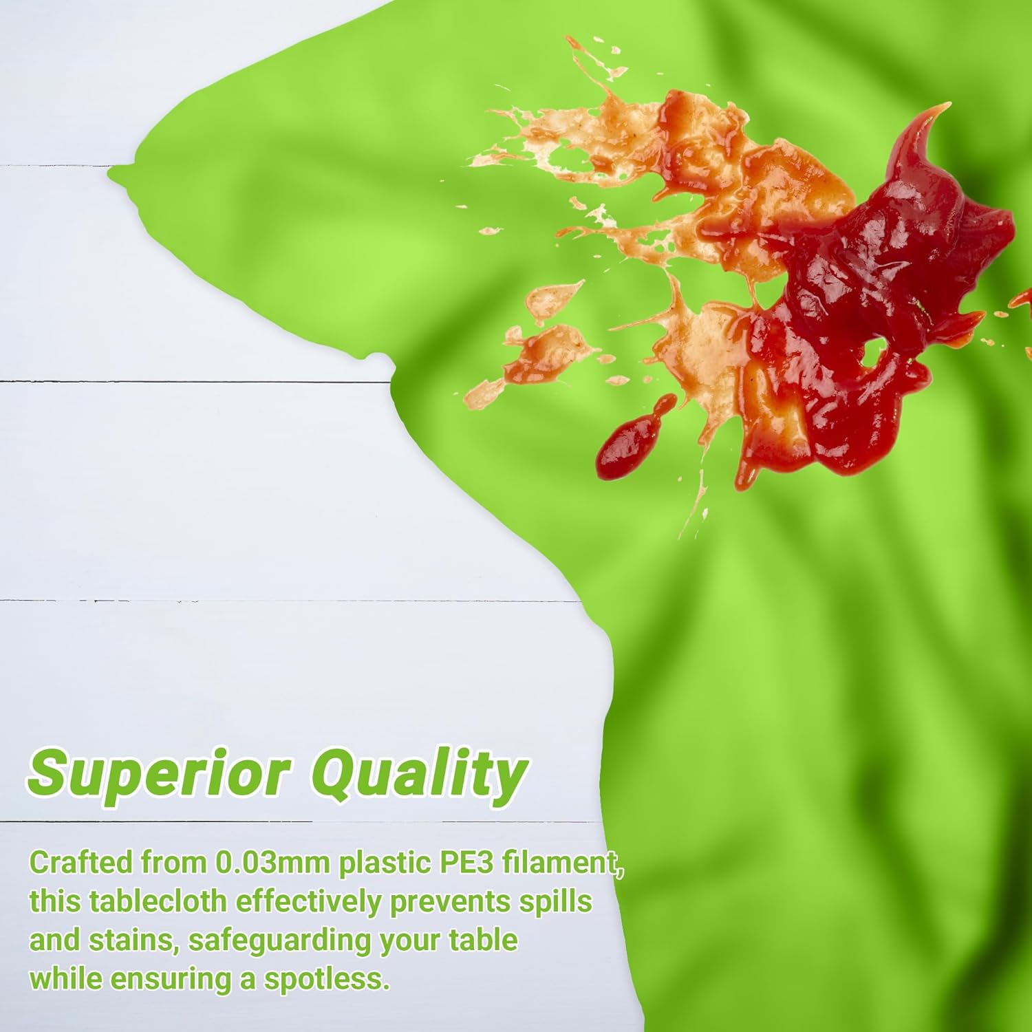 - Easy-Peasy Cleanup: These light green plastic rectangle tablecloths are perfect for handling spills from food, drinks or art supplies. Their disposable design makes cleanup a breeze!