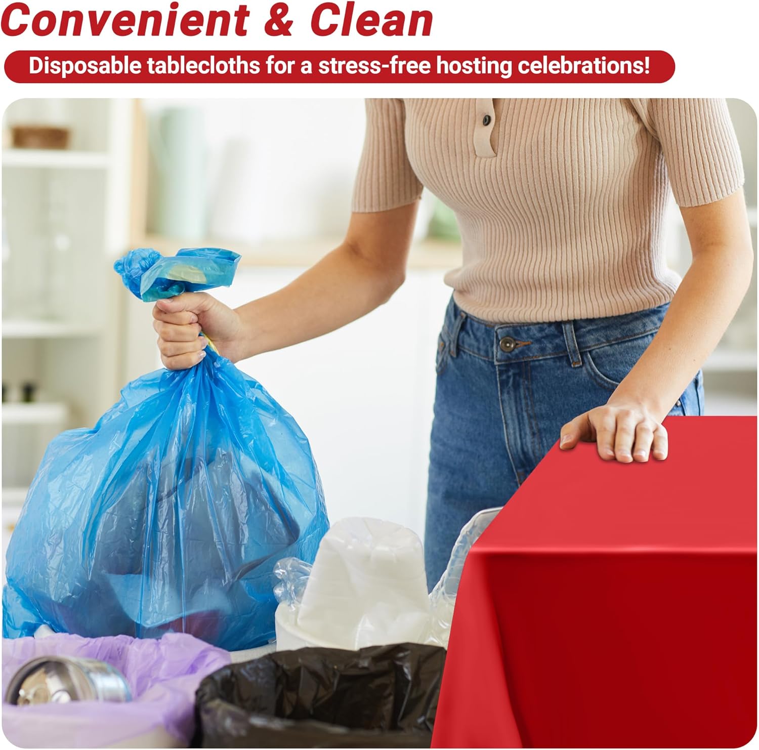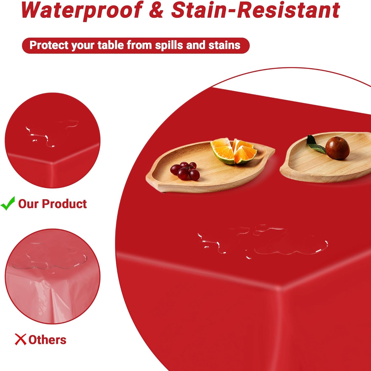 - Multiple Color Options: Available in multiple pattern options, our table cloths not only serve a practical purpose but also enhance the aesthetic of your table settings. Choose our red plastic table cover to add a vibrant touch to your decorations.