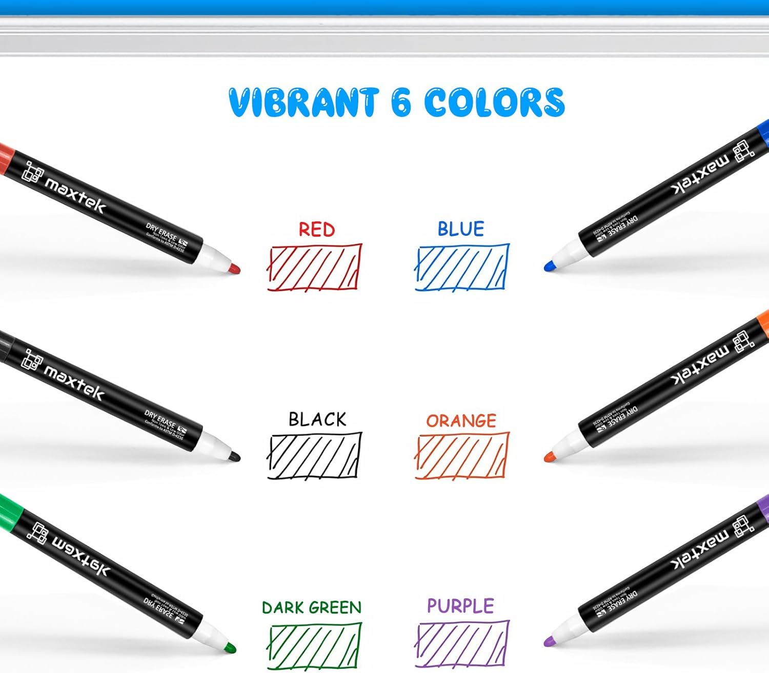 - Vibrant 6 Colors: 6 bold colors magnetic whiteboard markers include Black, Red, Blue, Green, Purple, Orange