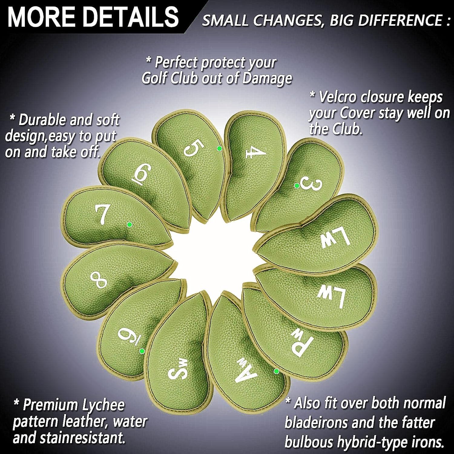 - Universal Fit, Easy On & Off: Slip these universal iron head covers on and off with ease. They fit most standard irons and wedges securely, staying in place as you play. Imagine moving smoothly from shot to shot—your rhythm never breaks, your clubs always stay protected.