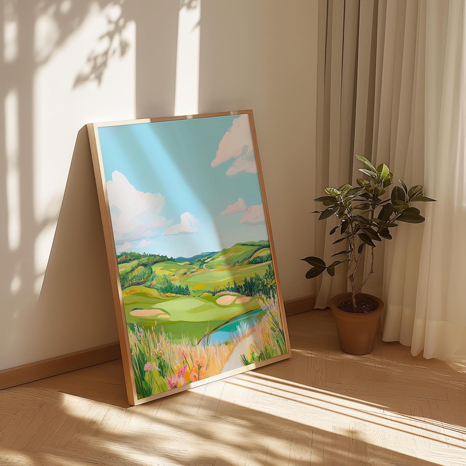 Golf Course Floral Pastel Art Print Posters - Premium Giclee Fine Art Prints - Golf Course Home Decor Posters, Golfer Art Prints for Home and Office Decor - Vintage Aesthetic, Ready to Frame