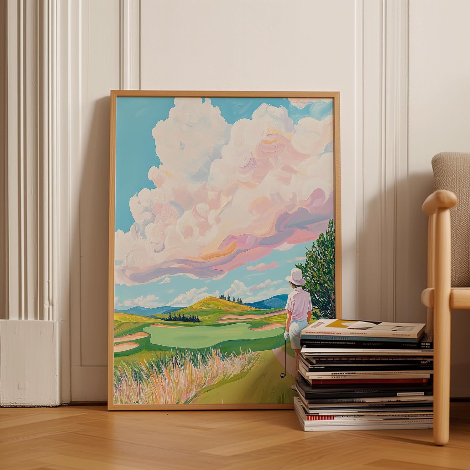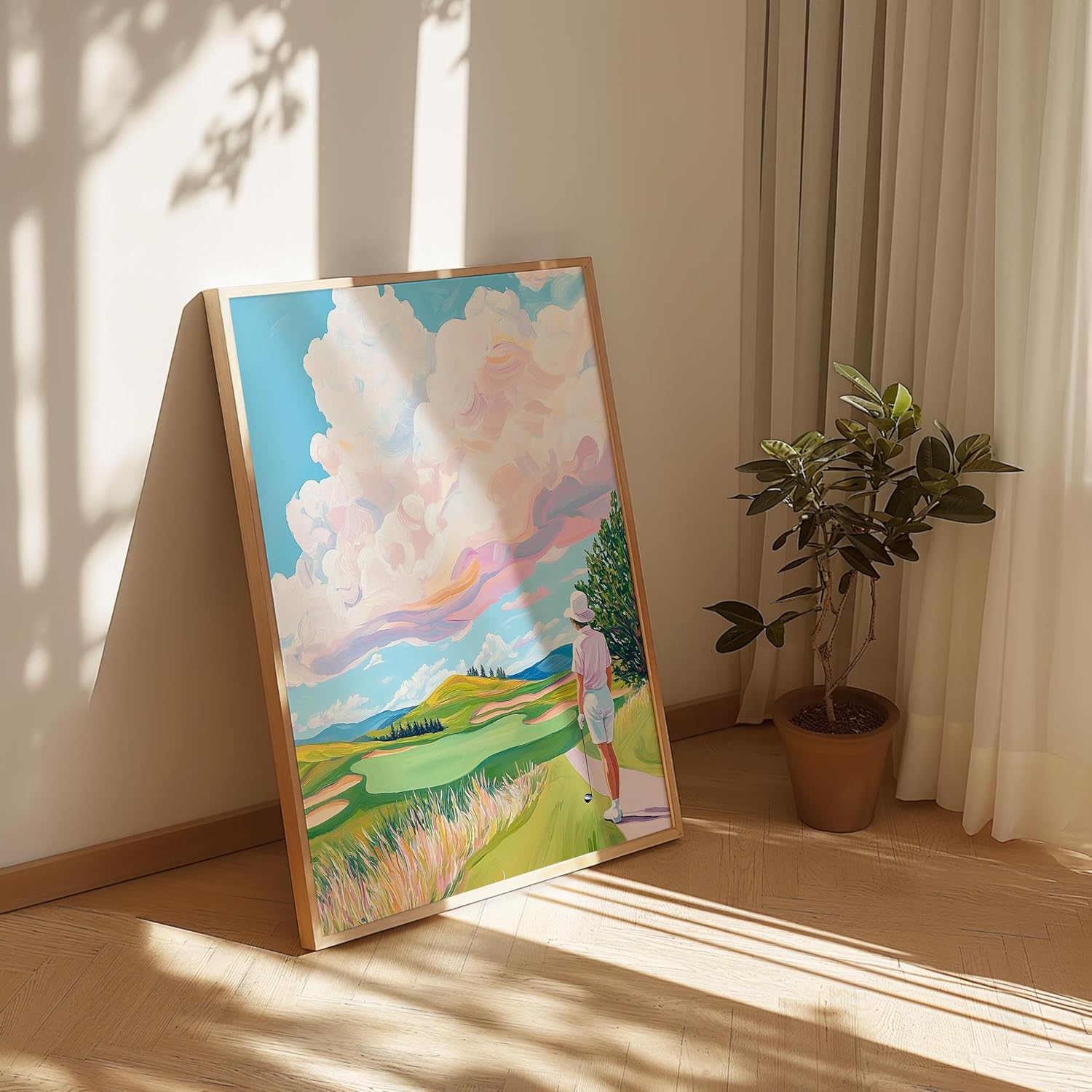 Golf Course Floral Pastel Art Print Posters - Premium Giclee Fine Art Prints - Golf Course Home Decor Posters, Golfer Art Prints for Home and Office Decor - Vintage Aesthetic, Ready to Frame