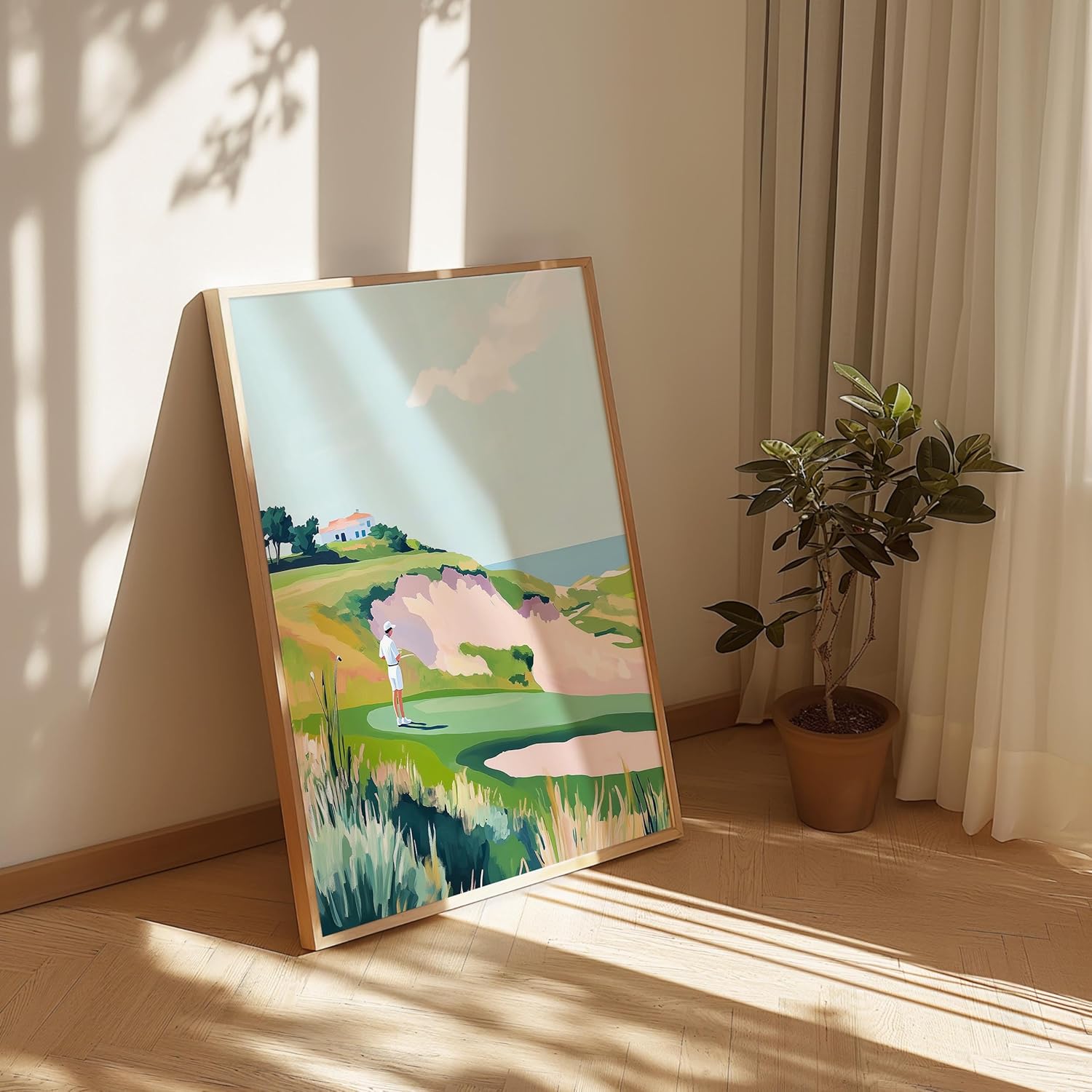Golf Course Floral Pastel Art Print Posters - Premium Giclee Fine Art Prints - Golf Course Home Decor Posters, Golfer Art Prints for Home and Office Decor - Vintage Aesthetic, Ready to Frame