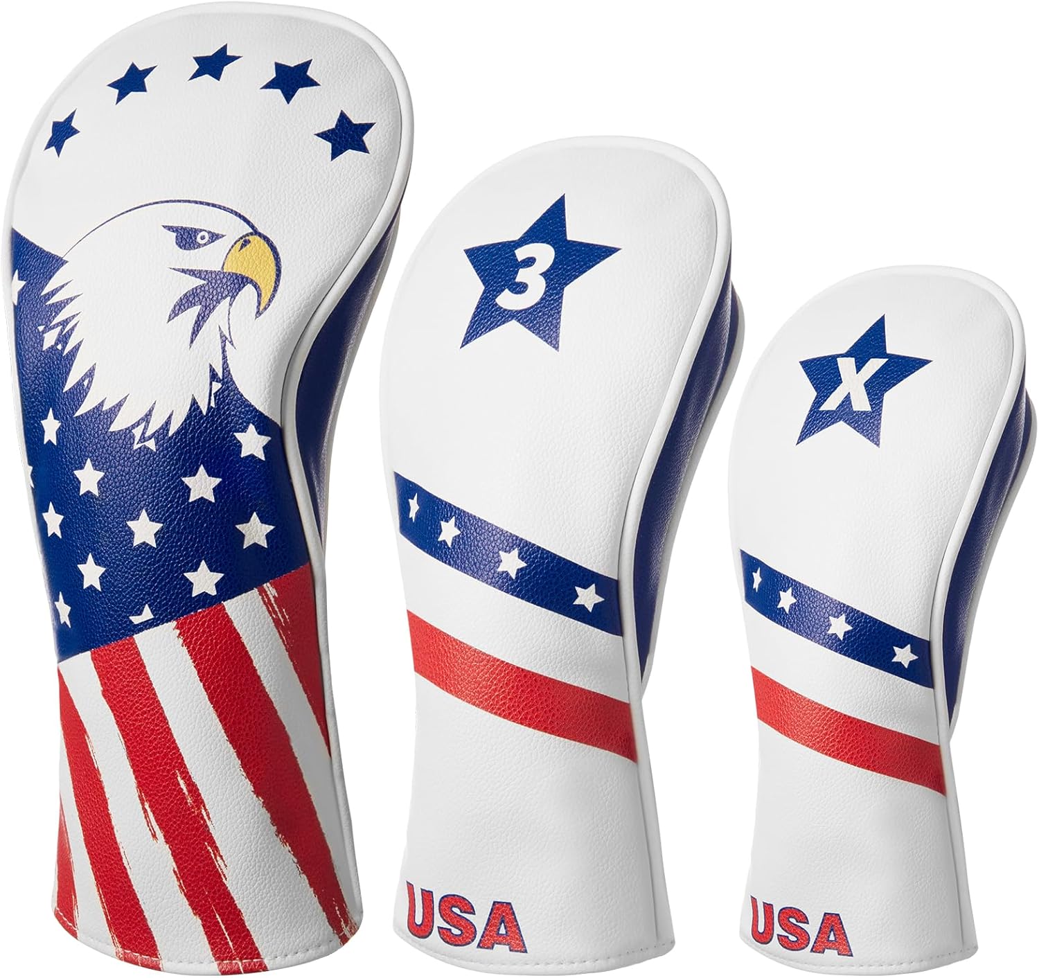 - Classic USA-Inspired Design: Showcase your style on the course with these head covers’ iconic American design. Inspired by classic American aesthetics, the vibrant colors and detailed patterns make a bold statement, allowing you to represent the USA with pride during every swing