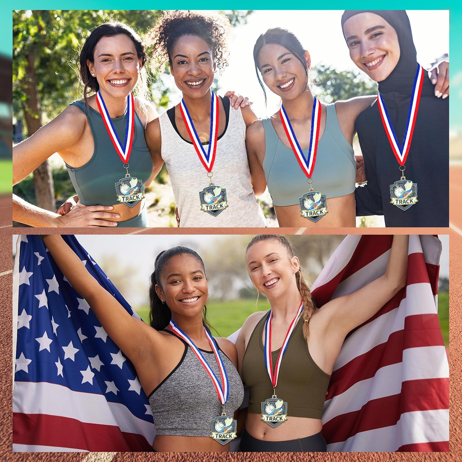 - Adequate Number Bulk: our sufficient package has 20 pcs track medals with mixed red, white and blue neck straps, these shield shape medals are suitable for you to honor multiple individuals and teams; These track awards medals for adults are ideal to serve as excellent party favors or giveaways to commemorate
