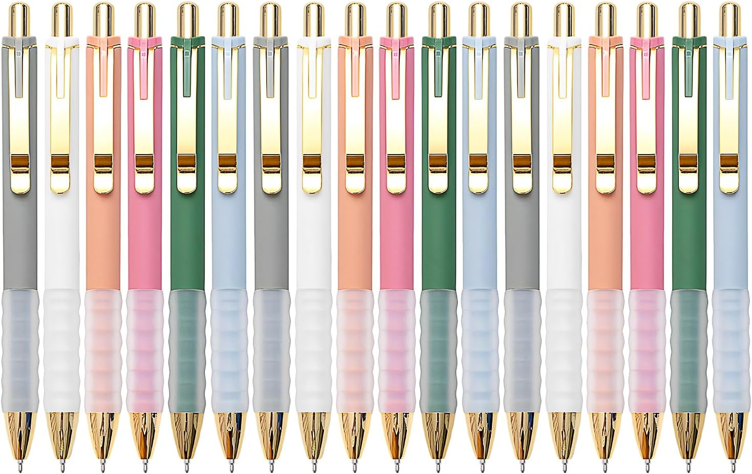 Linbsunne Ballpoint Pens Black Medium Point 1mm with Super Soft Grip Ball Point Pen for Men Women Retractable(gold-18 pcs)