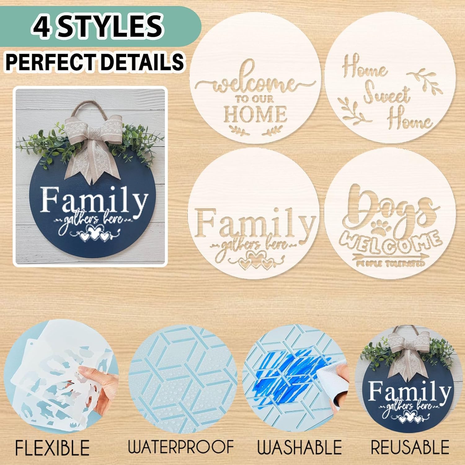 - 【Enjoy DIY Fun】Have fun with these smooth unfinished wood rounds and welcome stencils, easy to stain and paint, you can use it to create beautiful and functional signs for your home, office and other spaces, can also be applied for DIY projects, gift making and so on.