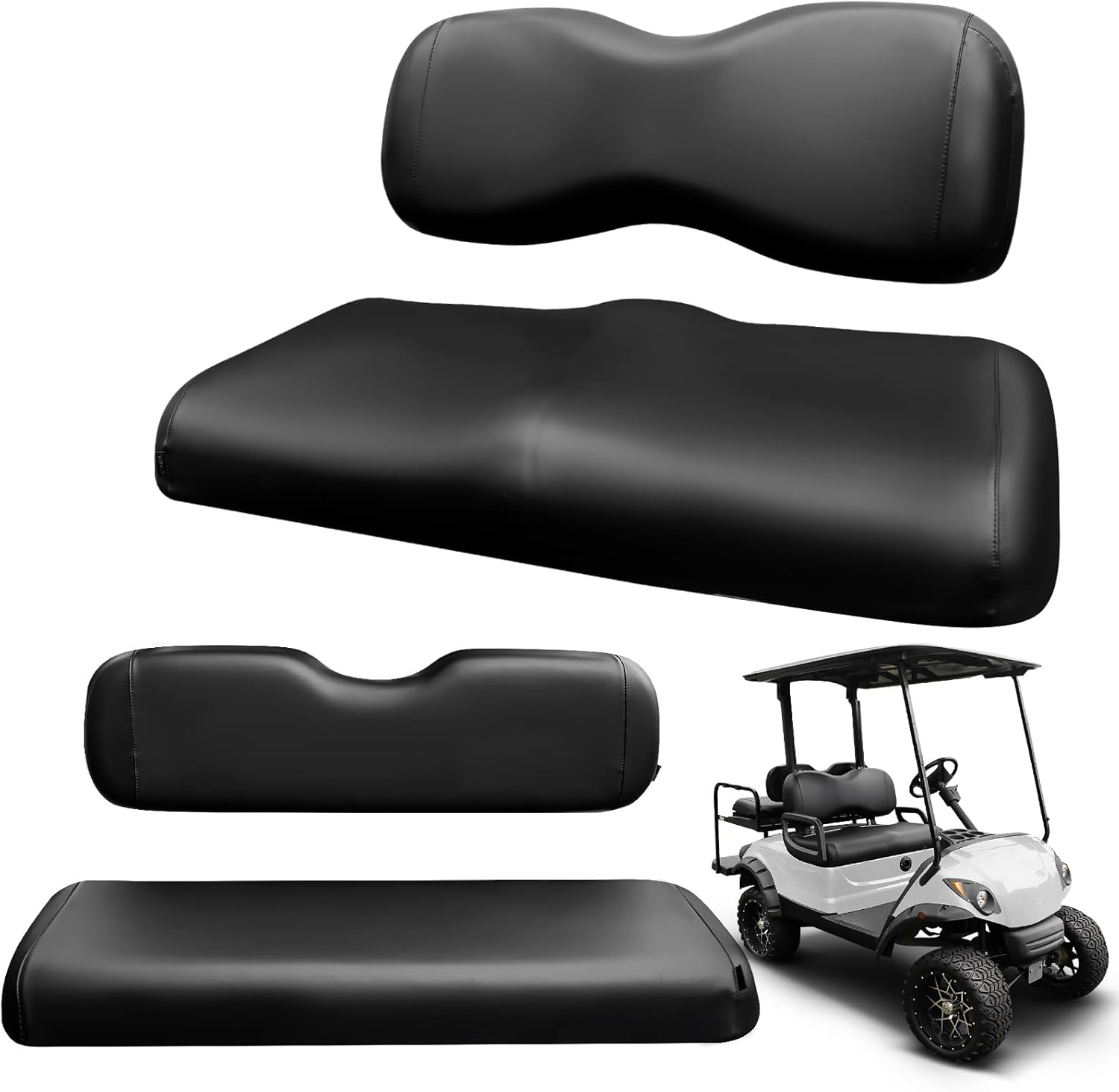 4PCS Golf Cart Seat Covers Kit,Front and Rear Seat Cover for Yamaha Drive/Drive 2 Standard Seat Cushion,Smooth and Simple Style, Waterproof Replacement Seat Cover(Black)