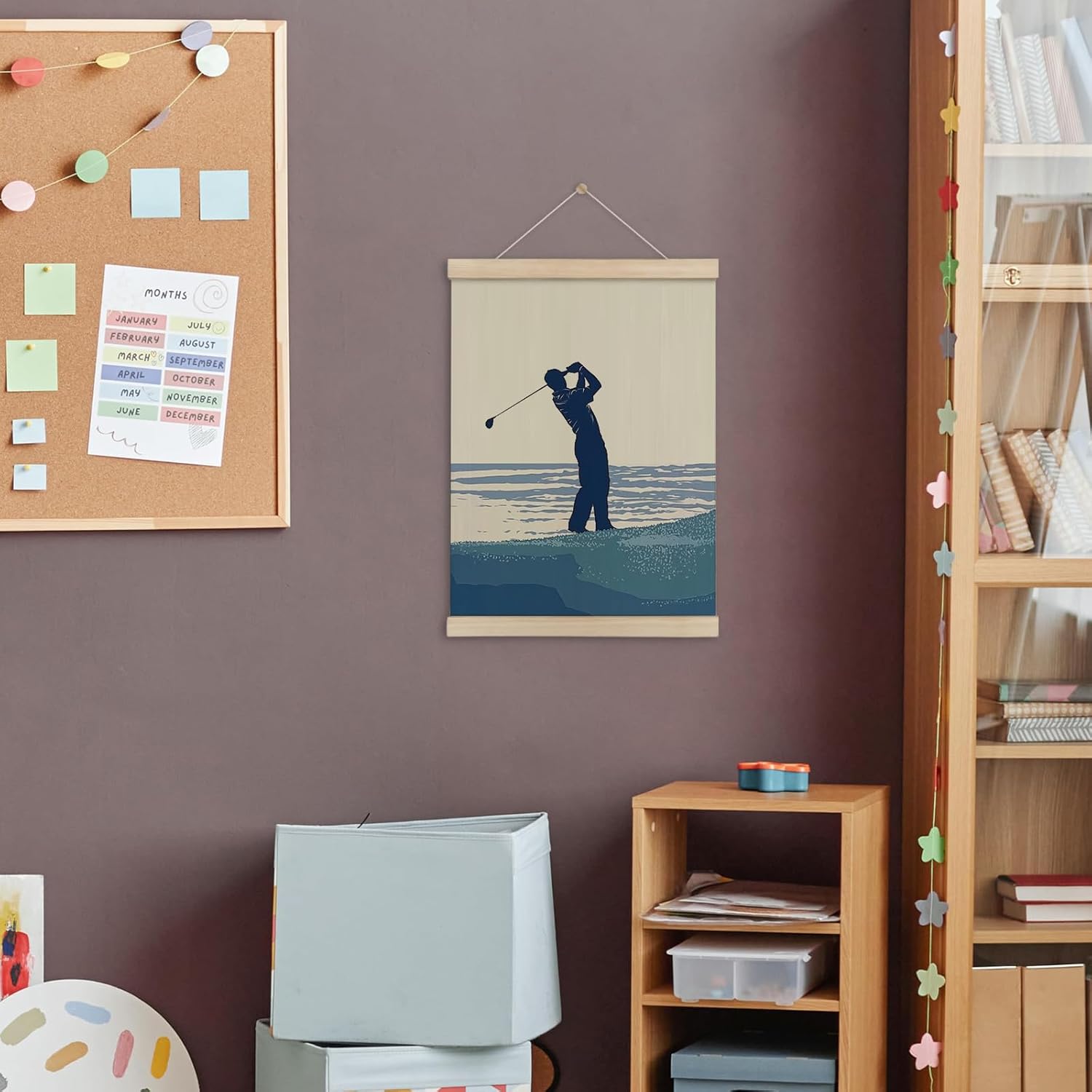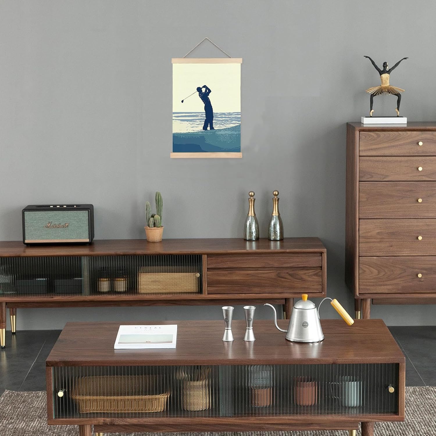 bitCNY Golf Swing Wall Art Print, Coastal Sport Silhouette Canvas Poster with Wooden Frame, Beach Style Hanging Decor for Office, Study, or Man Cave