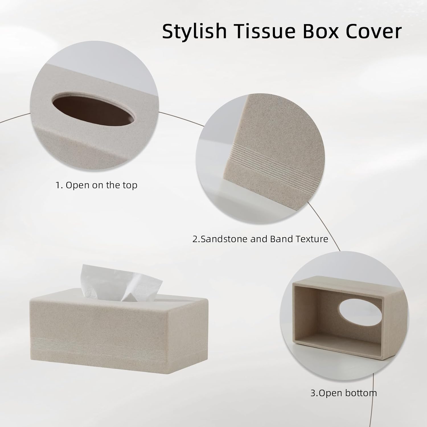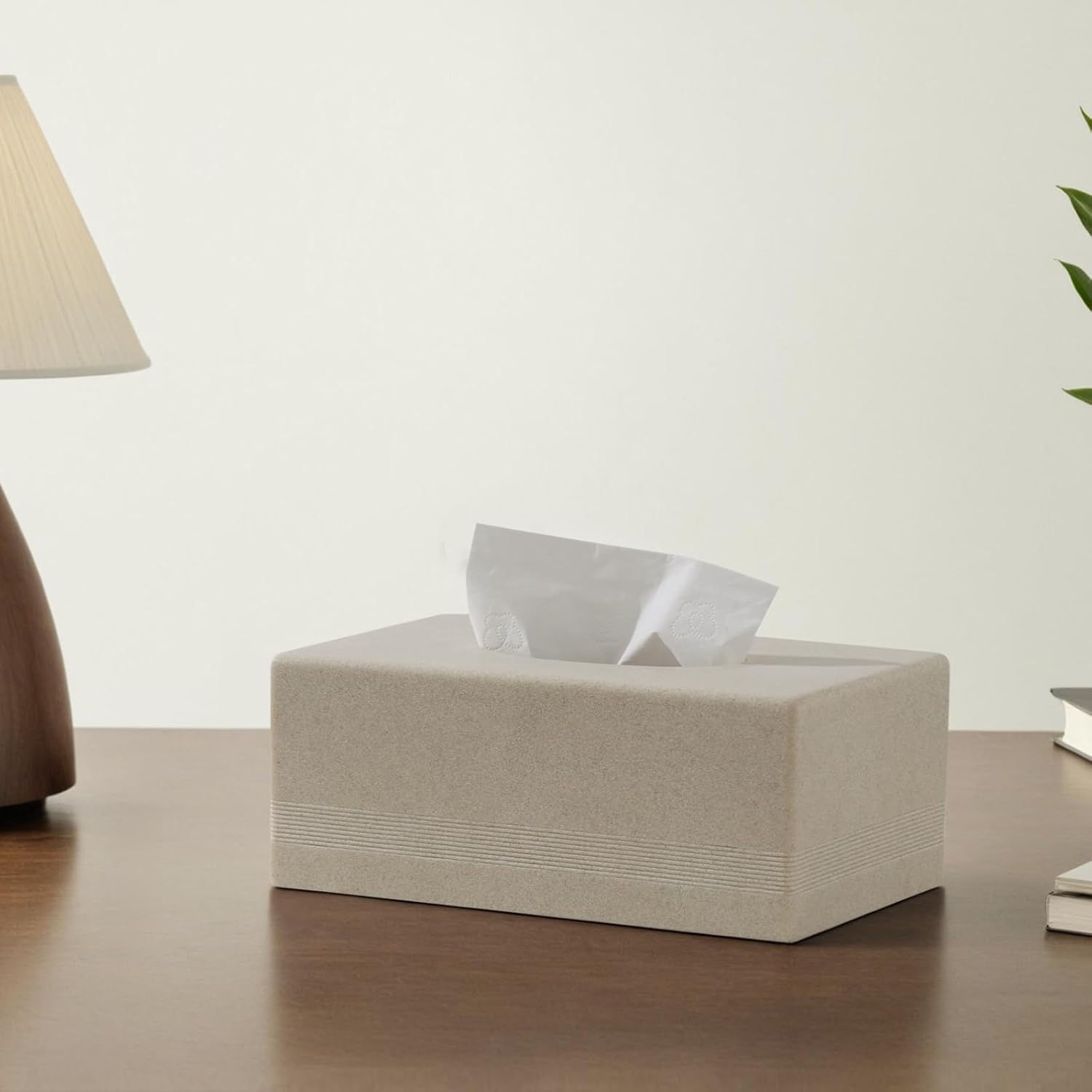 Tissue Box Cover Rectangle, Resin Facial Tissues Holder Covers Rectangular Toilet Paper Holder Case Dispenser Home Decorative for Bathroom Kitchen Bedroom Living Room Office (Beige)