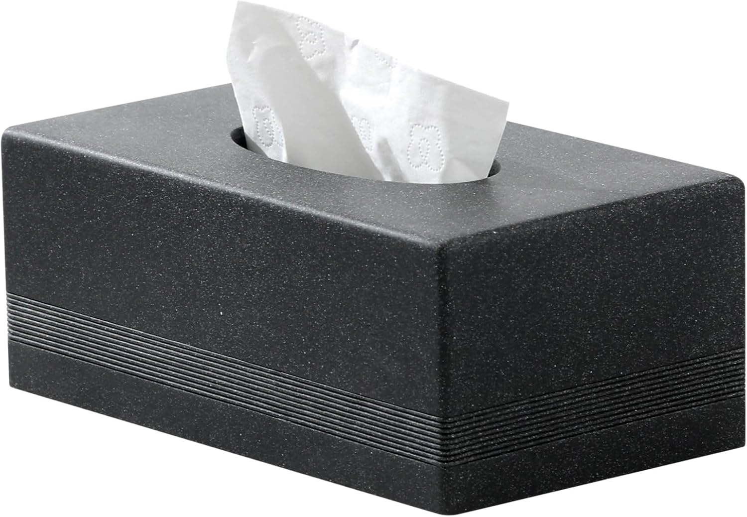 Tissue Box Cover Rectangle, Resin Facial Tissues Holder Covers RectangularToilet Paper Holder Case Dispenser Home Decorative for Bathroom Kitchen Bedroom Living Room Office (Black)