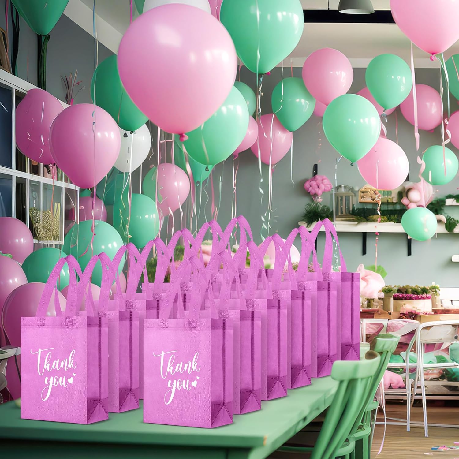- Applicable for Parties and Daily Life: these thank you tote non woven bags are ideal for weddings and bridal showers, also suitable for birthday parties, baby showers, Thanksgiving, graduation ceremonies, afternoon tea parties, business banquets and other occasions; There is a large enough capacity to hold gifts, jewelry, lipstick, souvenirs, toys, clothes, snacks, candy and more, providing you and your guests with a wonderful party atmosphere