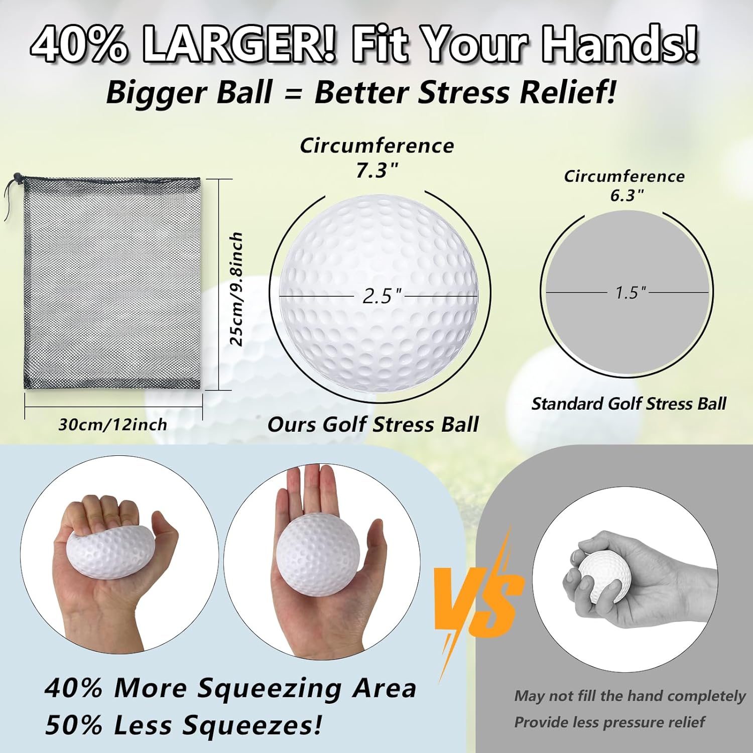 - Save Big with Bulk Pack: 30 Pack Golf Stress Balls with Black Mesh Drawstring Bag - Ultimate Relief & Fun! 40% larger than standard golf stress balls (6.3cm vs 4.5cm), providing more surface area for deeper pressure relief and comfortable grip. Plenty of quatity Even if it is lost or worn, there is enough spare, no need to buy frequently, whenever you need it, you can have it at any time. Easily squeeze the foam stress ball with one hand for you to relax and release stress